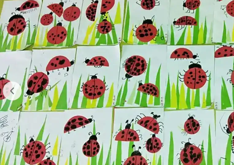 对于这节手工课,总的来说大部分幼儿都能独立完成得很好,基本都能自己按照步骤图来完成作品,也能懂得七星瓢虫是益虫,就是在延伸游戏的时候,我选择在室内进行,没能让幼儿自主的发掘幼儿的玩法.我应该把游戏延伸到户外进行,让幼儿自由发挥玩法。