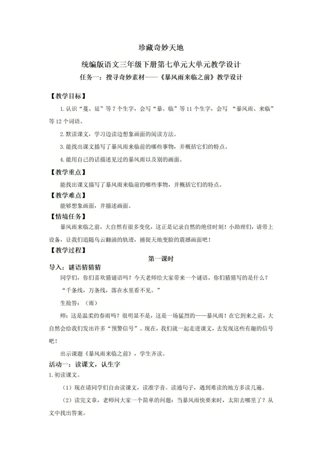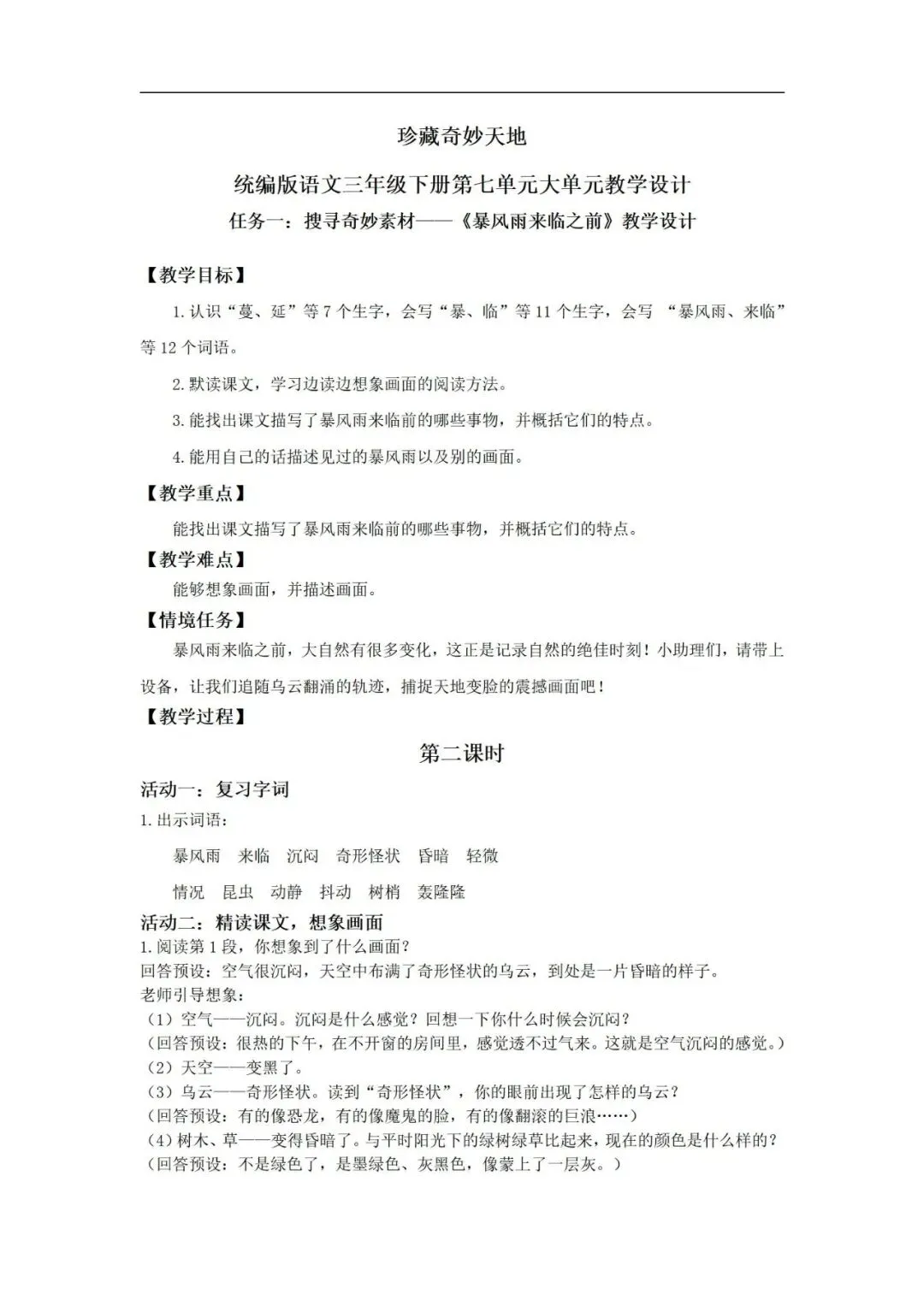 2026春新教材三年级下册语文教案《暴风雨来临之前》