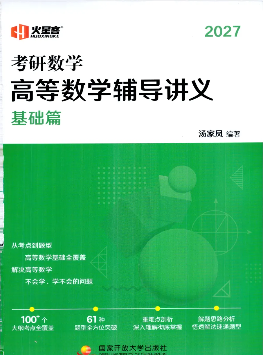 >2027考研数学汤家凤《高等数学辅导讲义》高清无水印pdf