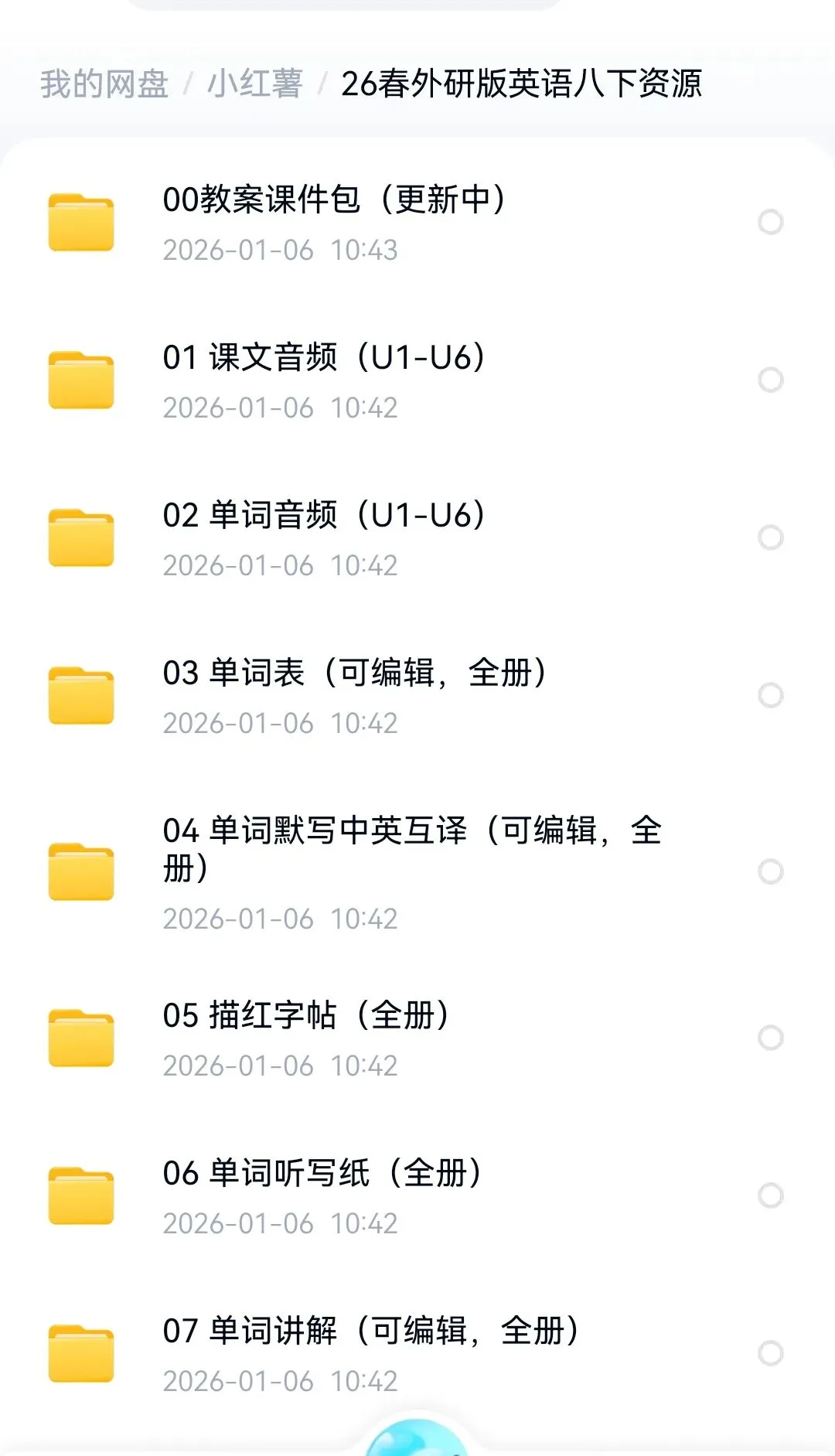 26年春新外研版英语八下资料包来咯,资料包包括以下内容,详见下图文件夹,版面有限,仅显示部分内容,电子版请拉到文末获取!