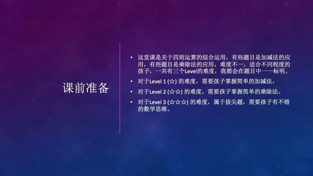 ☆☆☆比较难,是结合加减乘除的数学思维综合练习。
