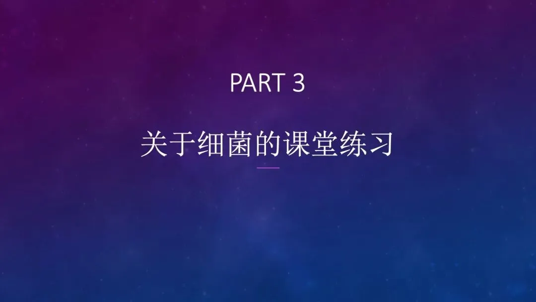 于是我紧接着推出一个课堂练习版块,就是让孩子通过解决一些问题,认识细菌的繁殖规律。