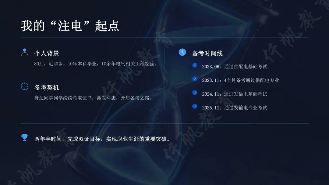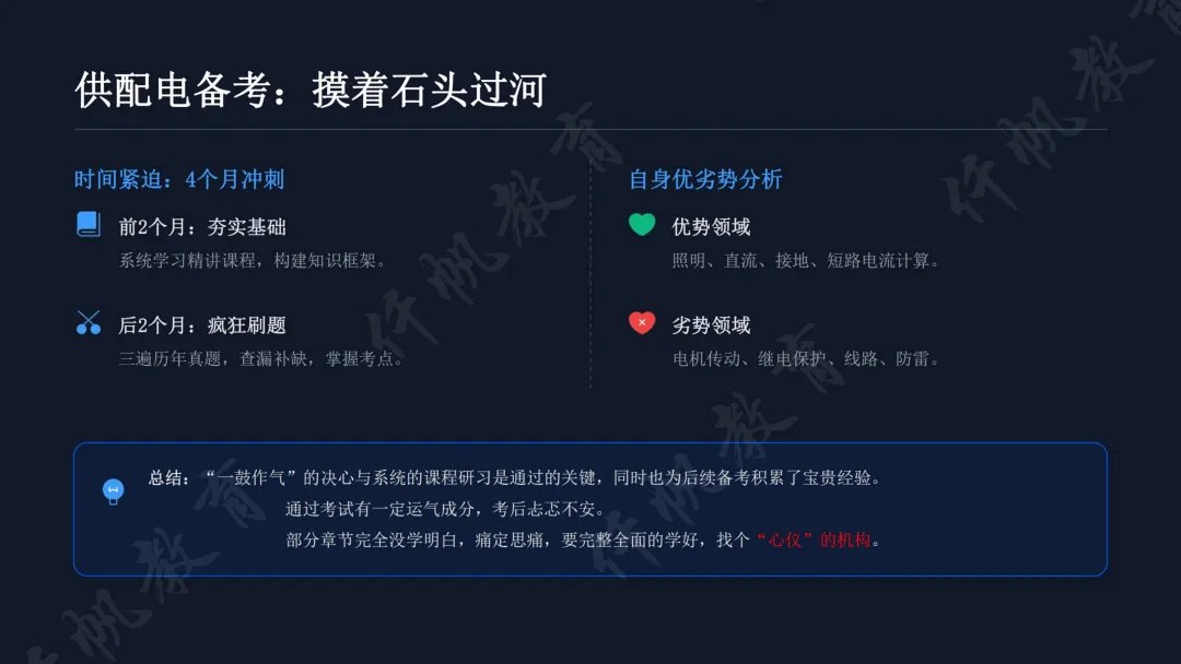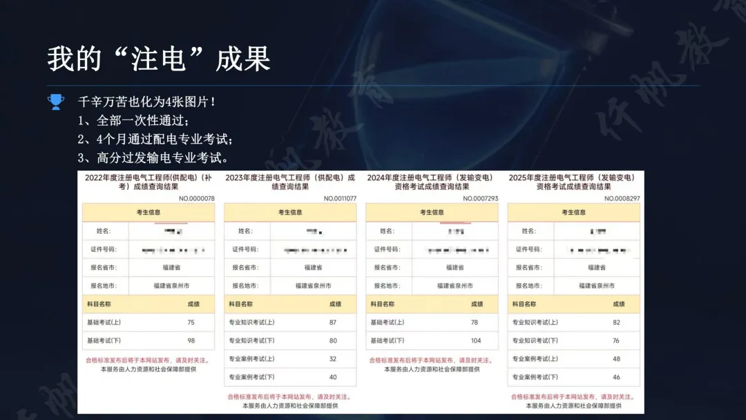 仟帆学员V神历时两年半一次性拿下供配电与发输电双证,其中供配电4个月冲刺通关,发输电高分通过。其备考经验核心如下: