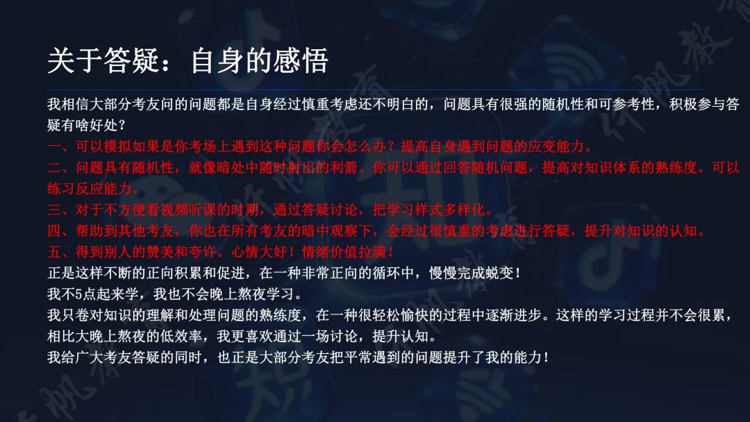 心得方面,建议备考者一鼓作气集中投入时间,争取家庭与工作支持;坚持独立思考后再答疑,内化知识;善用碎片化时间和学习群体,通过答疑讨论提升能力;以考代学,聚焦知识点掌握与做题熟练度,而非单纯追求学习时长或刷题次数,在平和心态中实现能力与证书的双重收获。