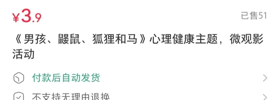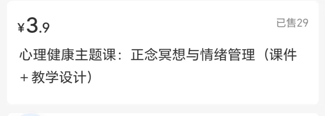 前段时间发了自己制作心理健康课件的课程,新手小白按照步骤完全能够直接制作出一份实用的课件,纯实操内容,课程不到一天就能看完,当天边看边做,就能够出课件与教学设计。课程给纯新手测试,结果是也能够制作不错的课件哦。文末赞赏39.9元就能获取课程所有内容,学会一项实用技能,再也不用担心心理课、心理讲座课件怎么办了?甚至顺便还能够把做出来的课件卖出去,成为自己副业的助力技能。做为副业赚点零花钱也是挺好的。下面图片是我制作的课件卖出去的部分截图,正念冥想与情绪管理一个卖了两百多,男孩鼹鼠狐狸和马也是一个课件卖了两百多。我卖的也不多,就十来个课件,获得市级奖项的课件有几个还没有挂出来,还是太懒了一些,后续加油吧!