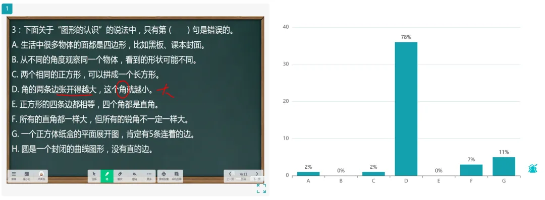 本题情况最好,有78%的同学选对第4D项,课堂上我几乎是一点即过。