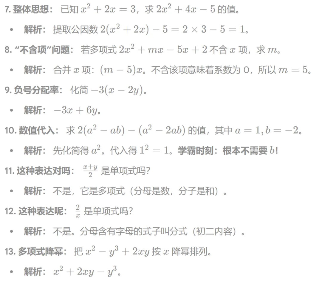老师寄语: 整式是通往方程的桥梁。桥基不稳(去括号错),方程就必塌。当你能面不改色地化简掉一长串字母,并且最后得出一个干净漂亮的x^2时,你已经拥有了学霸的“代数美感”。