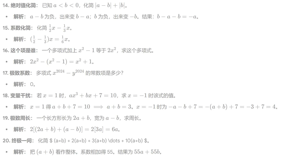 武器:“块状处理思维”。学霸把每个括号看成一个整体,变号时像扫描仪一样从左扫到右,确保不漏掉任何一项。