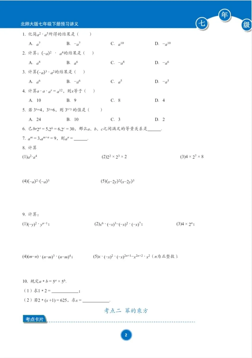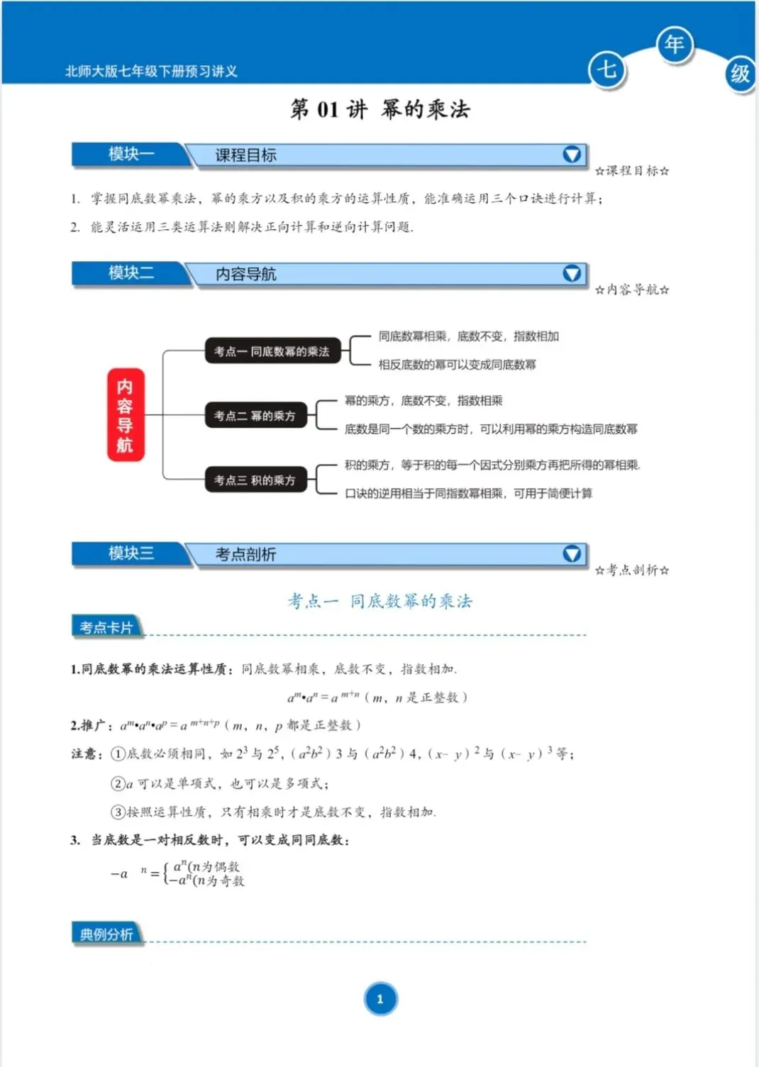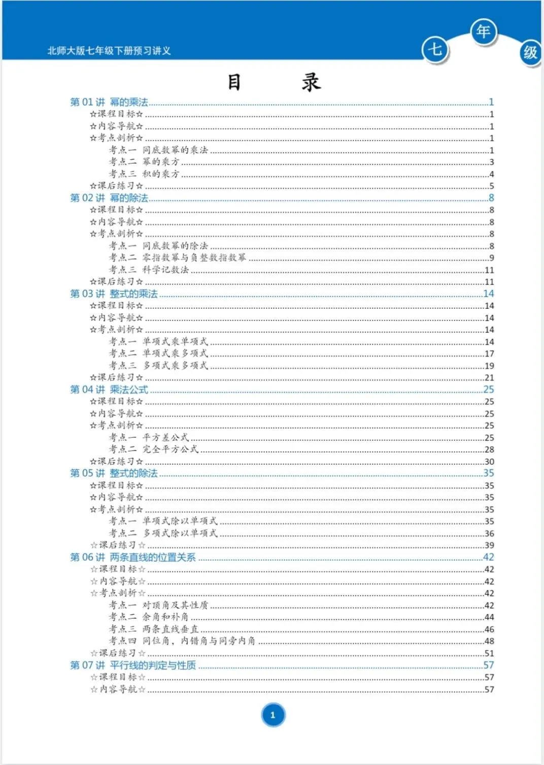 (新教材)北师大版七年级下册寒假预习讲义