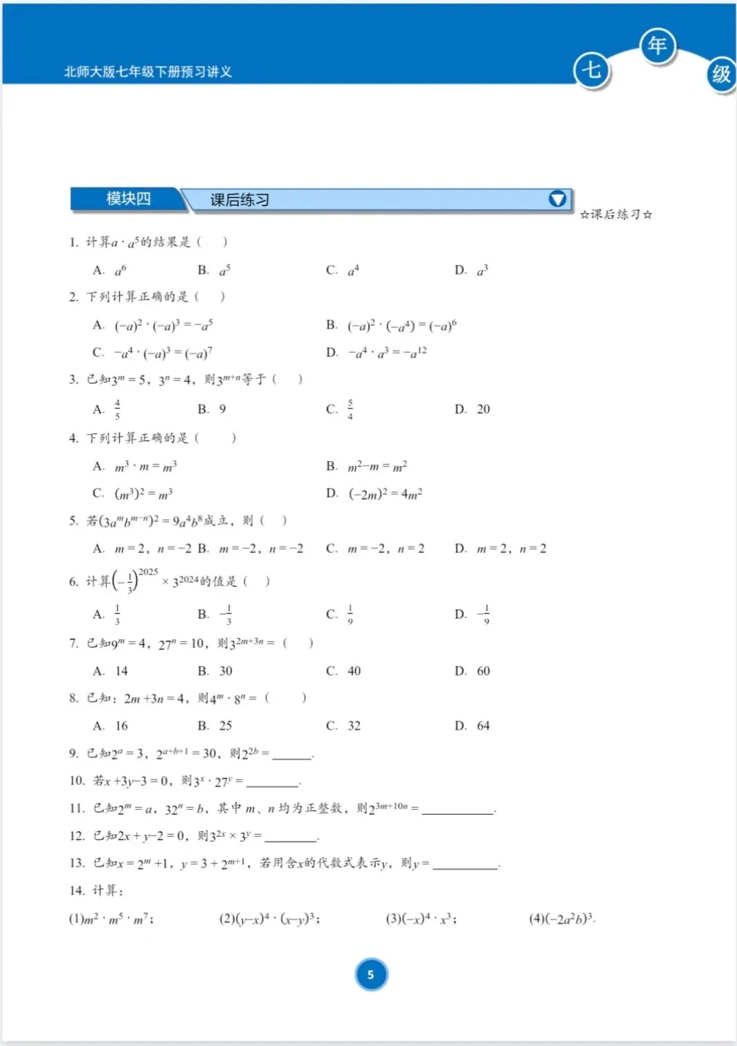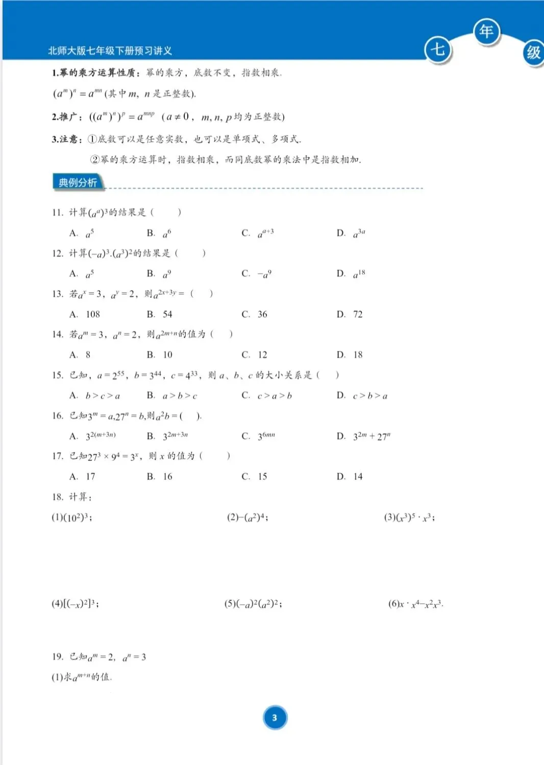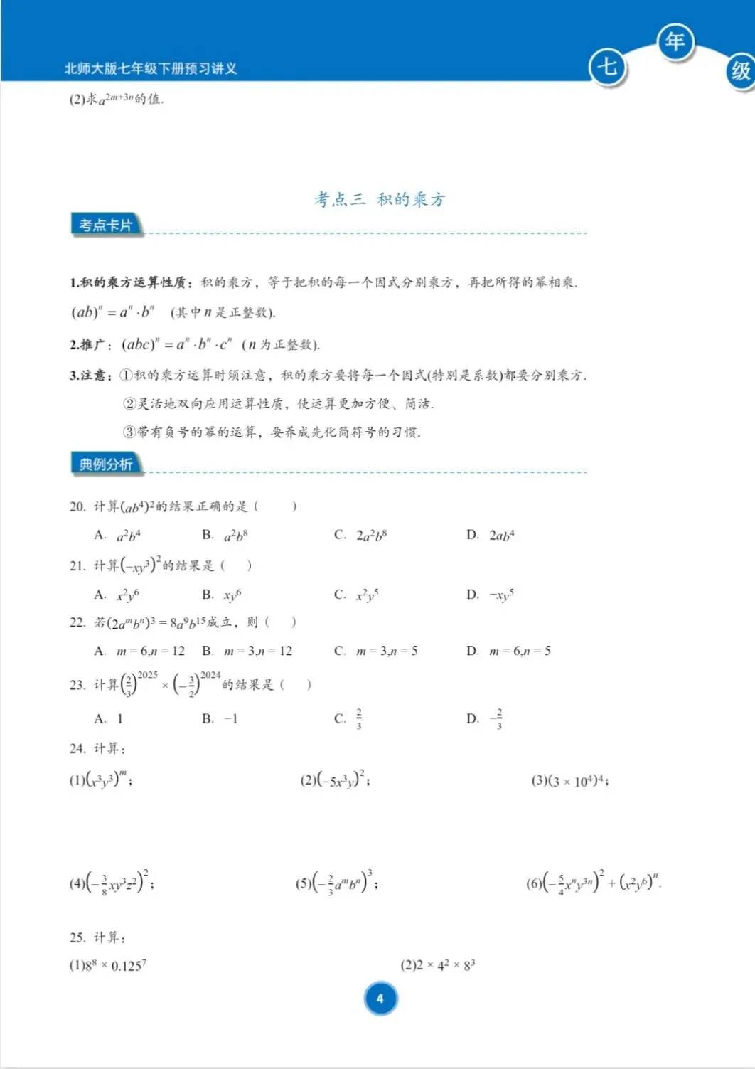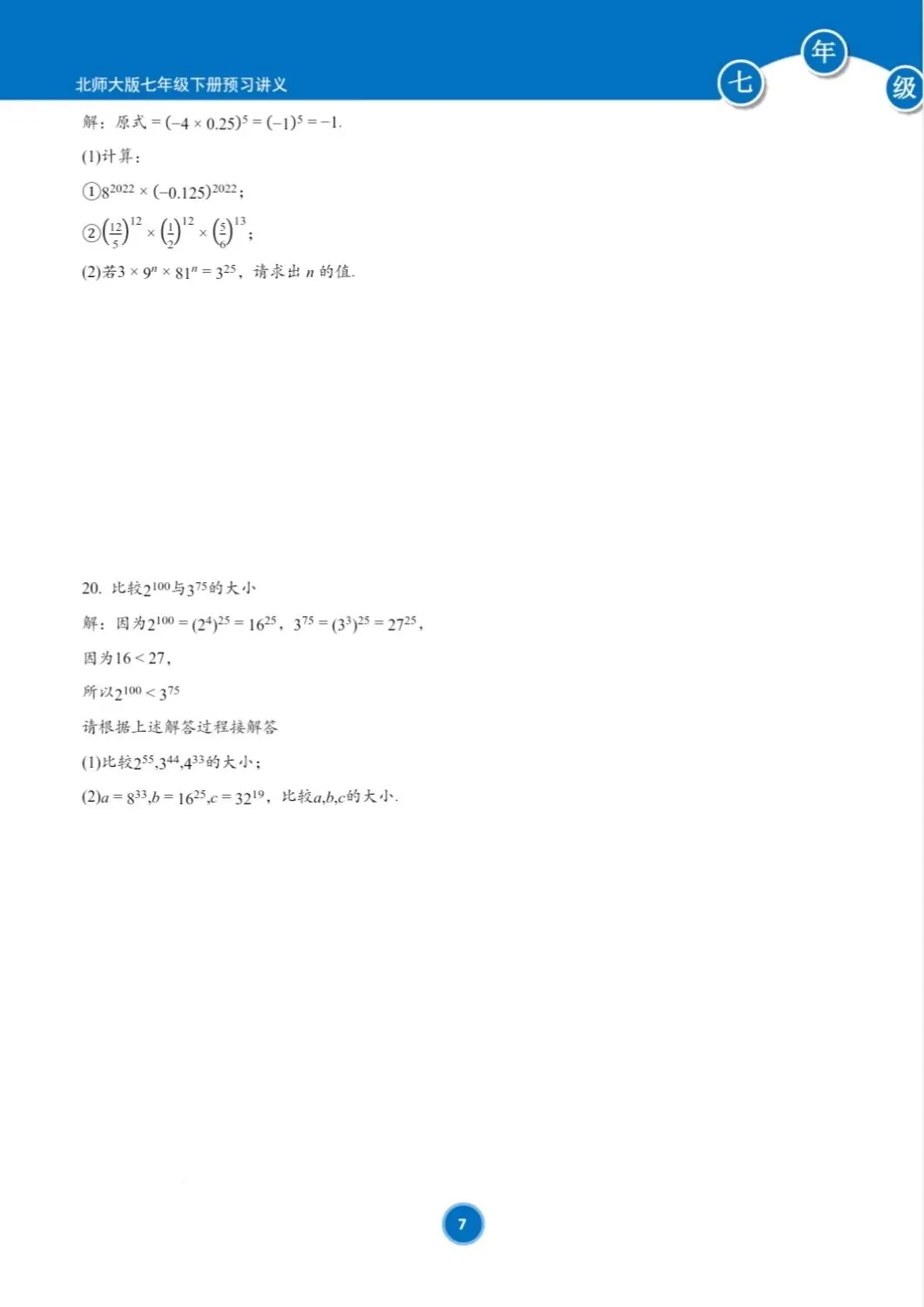 >(新教材)北师大版七年级下册寒假预习讲义