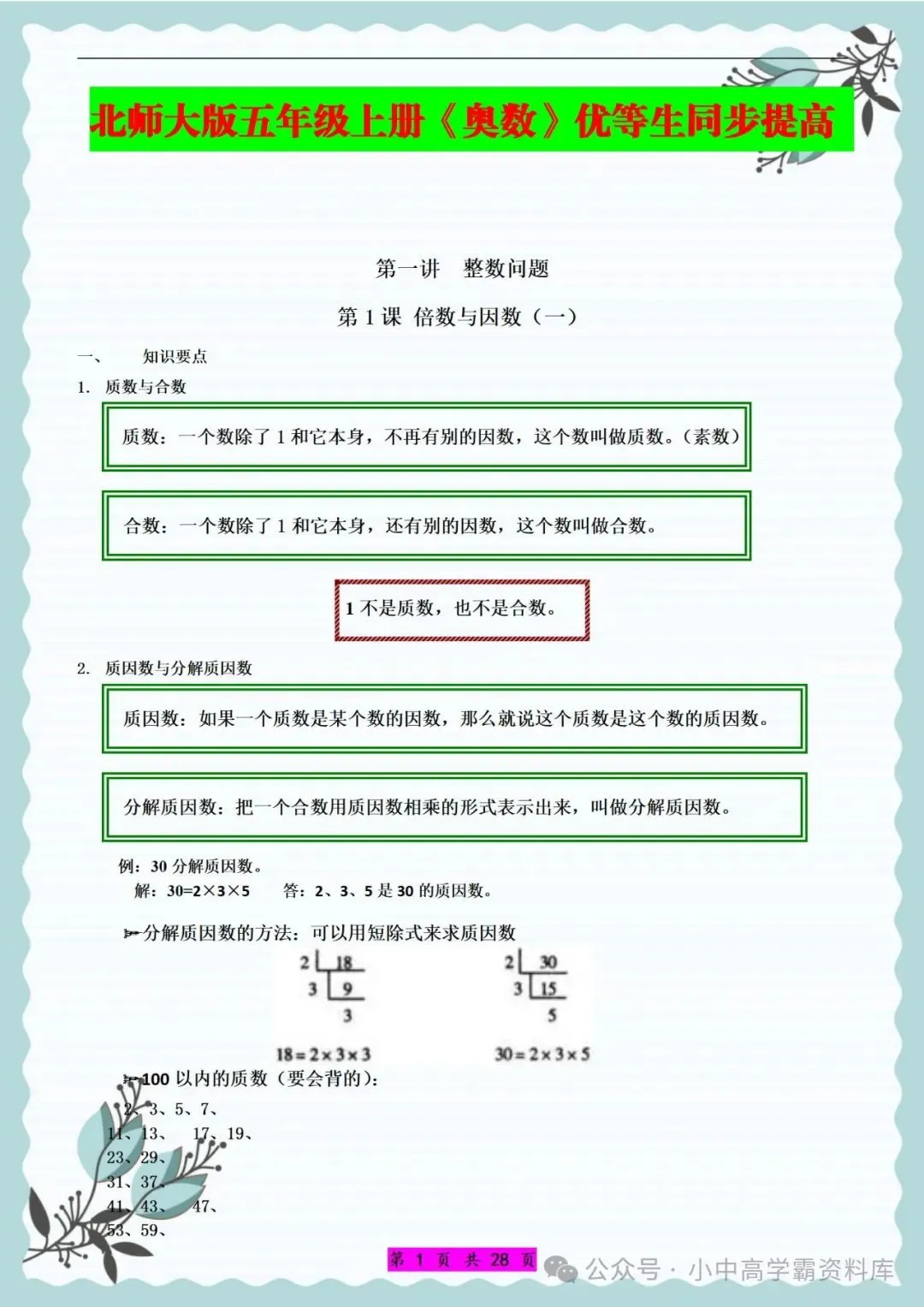 25秋北师版五年级上册奥数讲义,优等生同步提高 ,吃透满分不难!