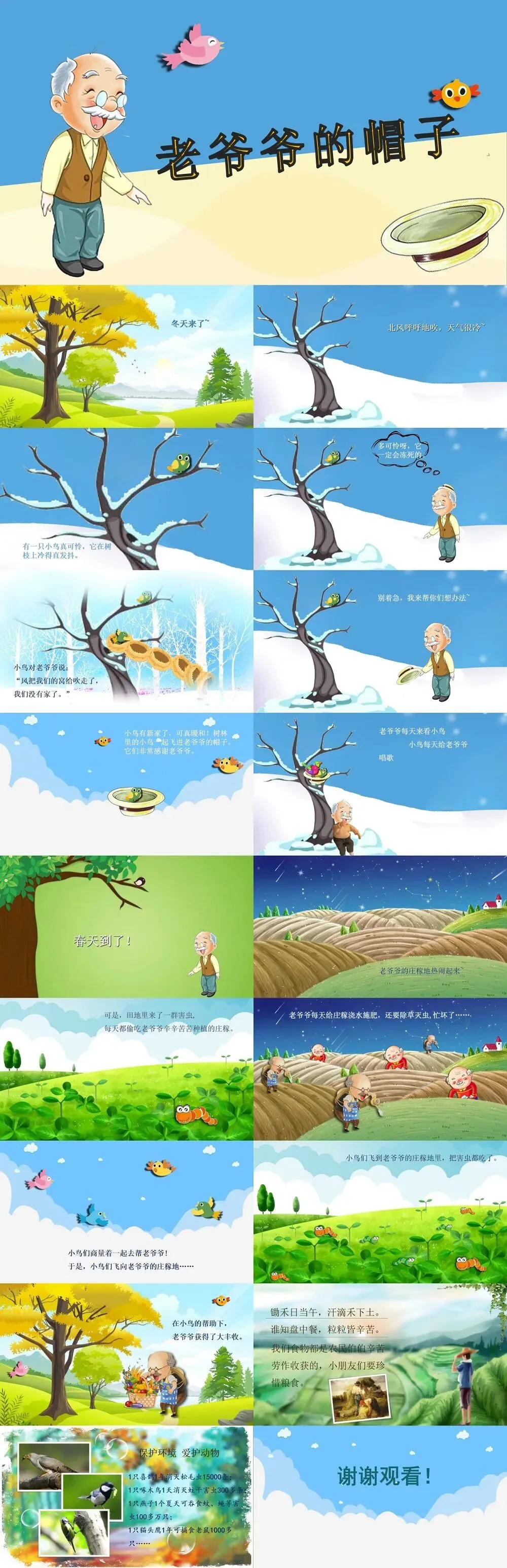 1、理解故事内容,体验老爷爷与小鸟相互关心、相互帮助的美好情感。2、激发幼儿的同情心,获得被人关心和帮助他人的内心感受。