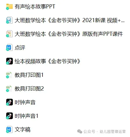 我用夸克网盘分享了「大班数学绘本《金老爷买钟》视频+教案+课件+绘本+音效+教具」,点击链接即可保存。打开「夸克APP」,无需下载在线播放视频,畅享原画5倍速,支持电视投屏。