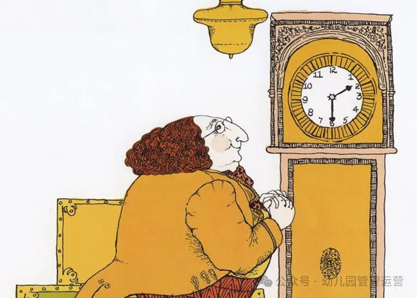 《金老爷买钟》是一个非常优秀的绘本故事,作者通过该诸的故事情节,带着苏格兰古补风格的画面,讲述了一个富有但缺少智慧的金老爷一次次犯错的有趣过程。通过比较不同钟面上所显示的不同时间,以及金者爷一次又ー次上楼、下楼来到不同房间的复杂变化,不仅具有帮助幼儿识别钟面时间的显性价值,还藴含着“时间在不断流逝”这一幼儿很少察觉到的关于时间的重要特性。大班下学期的幼儿已经积累了一些有关识别钟面时间的经验,但他们的经验大多停留在对于整点、半点等静态时间的认知上,通过将这一故事设计为大现数学活动,可以帮助幼儿联系已有经验,体会时间的流逝性,这对于提升幼儿对时리的认识有着十分积极的意义。