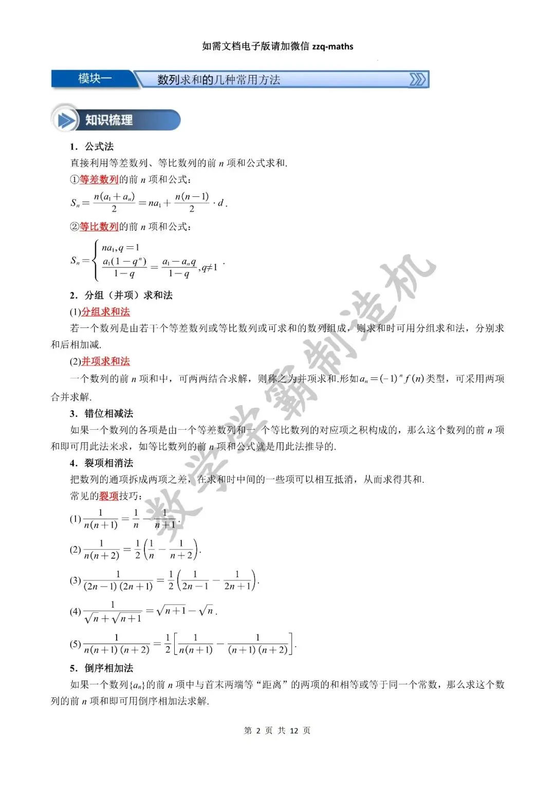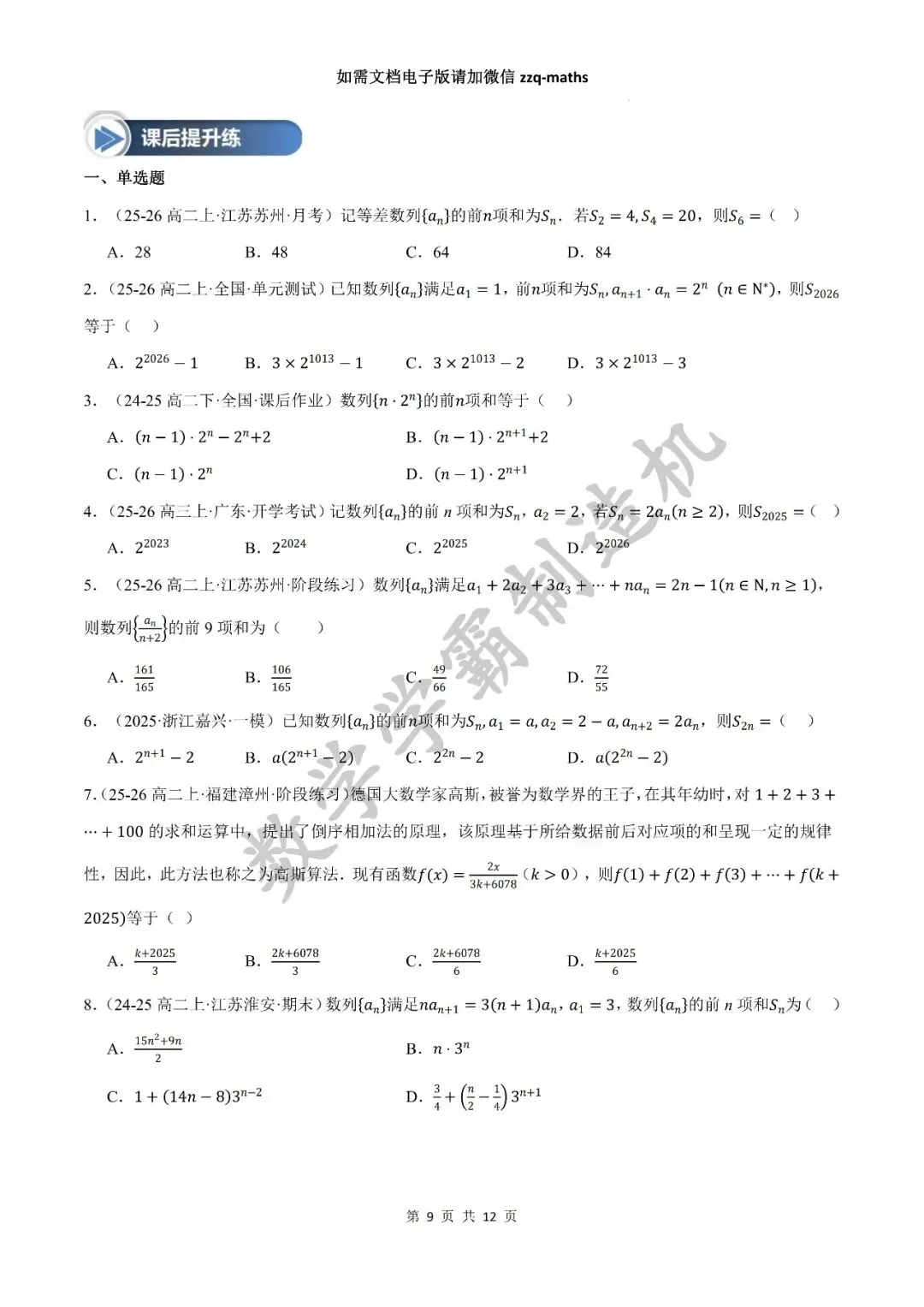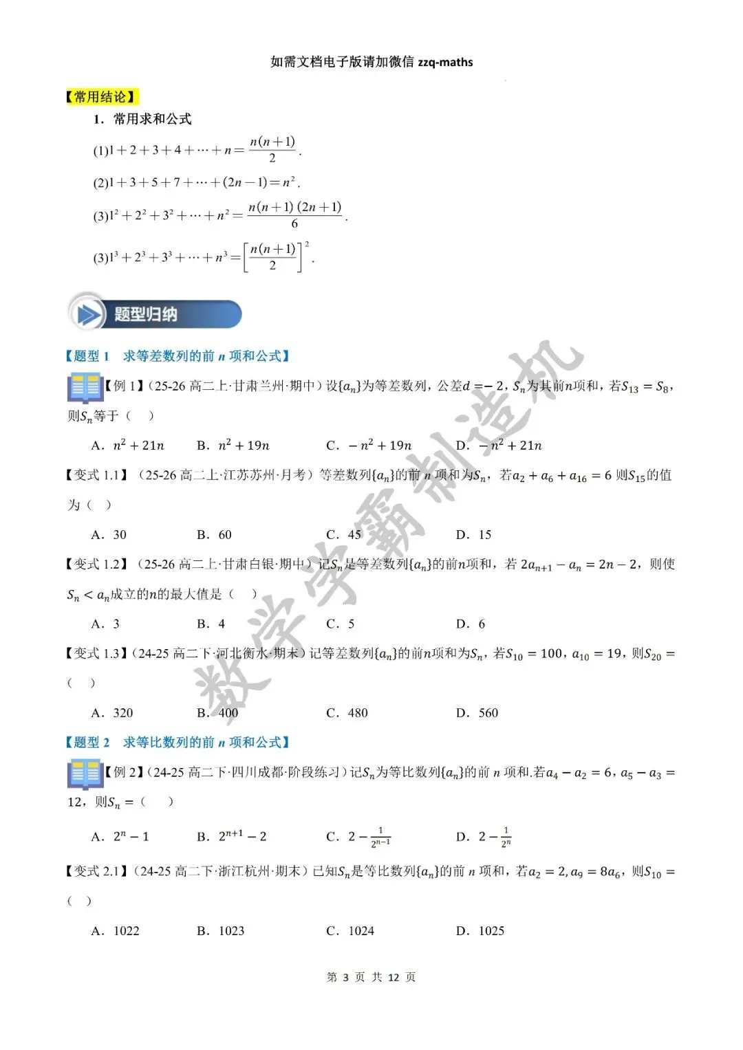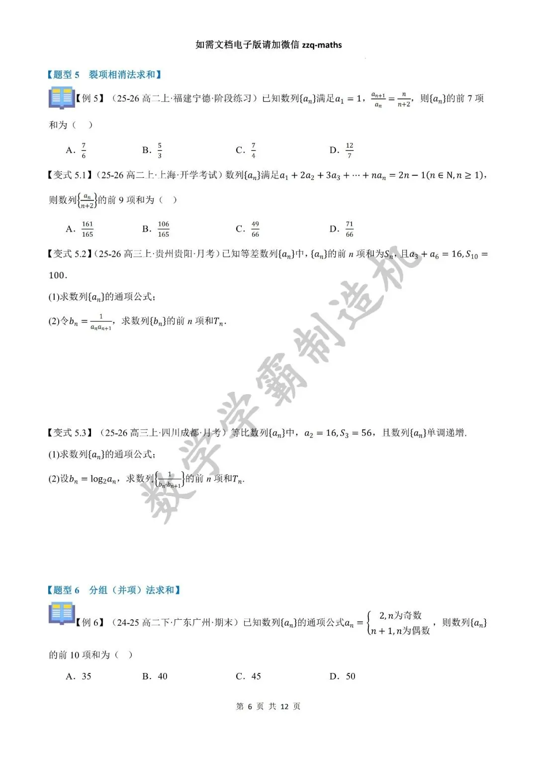 本期发布的内容是2025-2026秋季高二数学讲义【数列的求和(七大题型】,快来看看吧!该篇完整无水印原卷版和解析版可关注公众号获取, 另外整套完整无水印原卷版和解析版可考虑加入精品QQ群获取。有任何问题可以微信公众号留言,或者添加邹老师个人微信号zzq-maths。