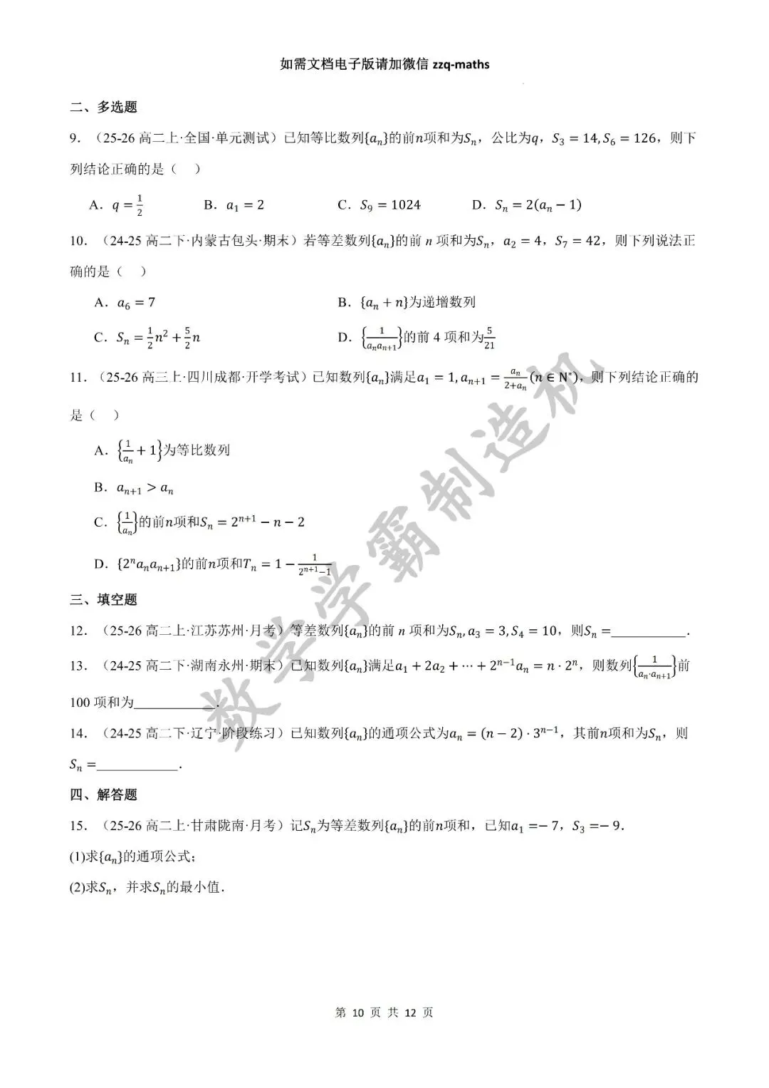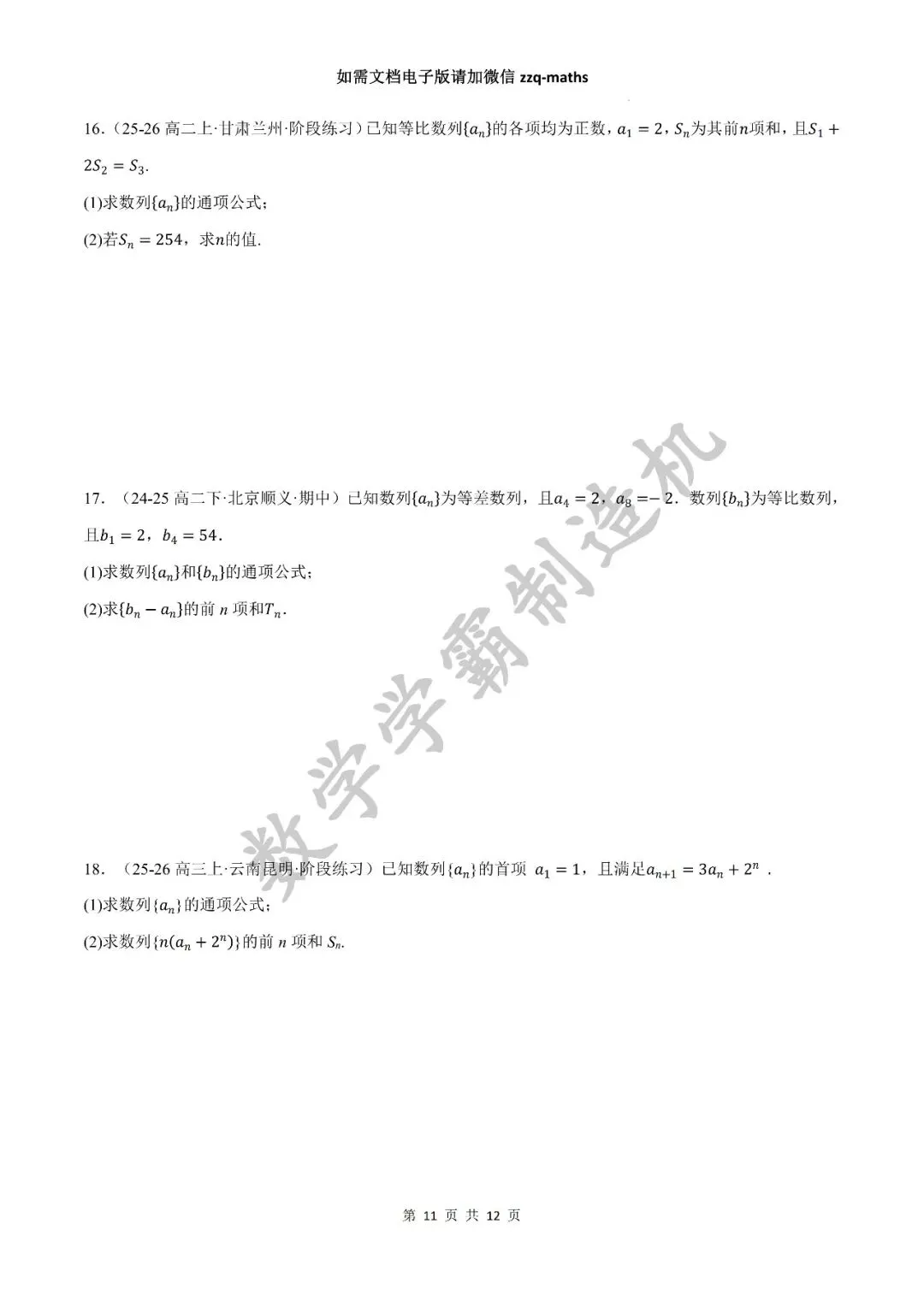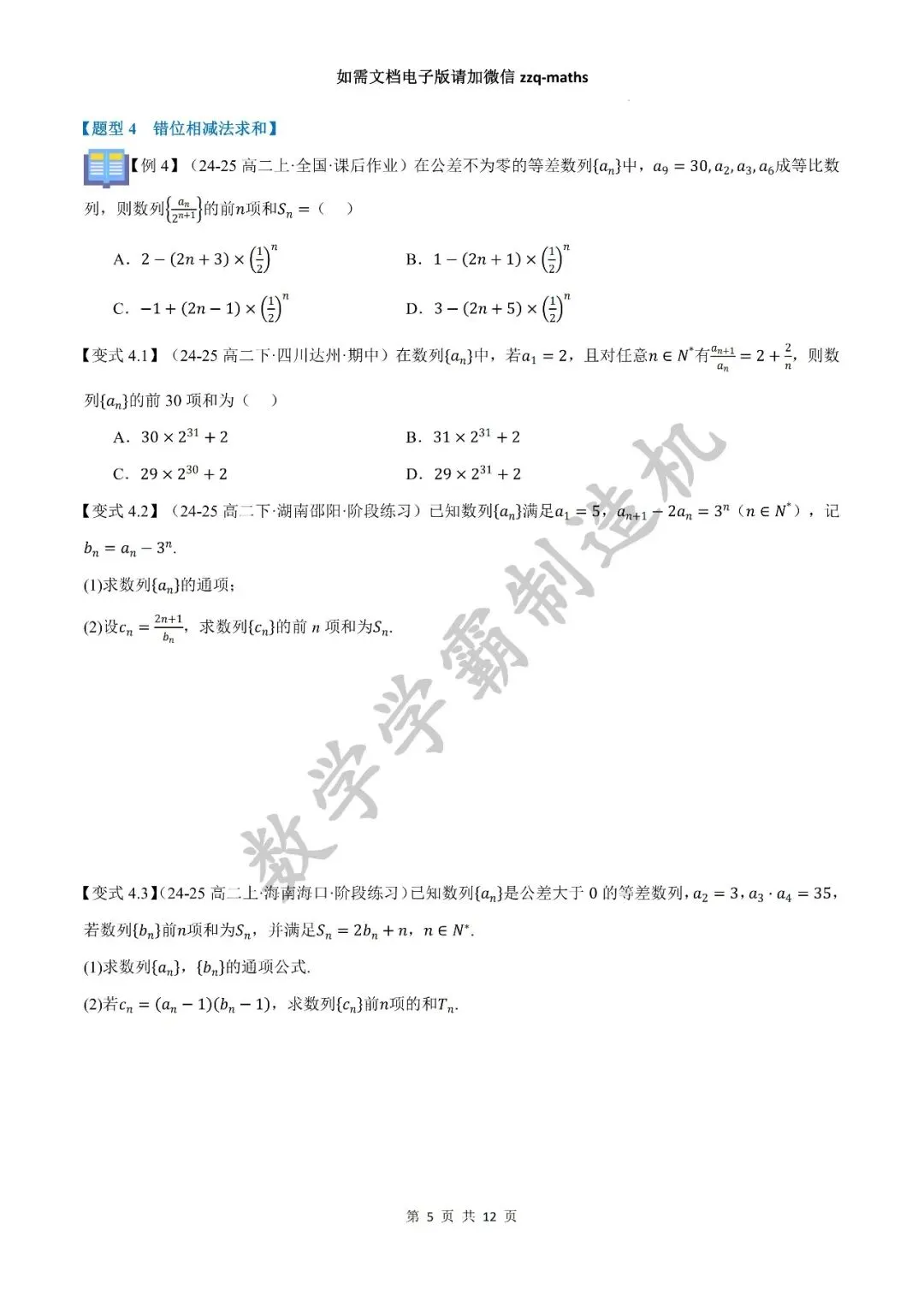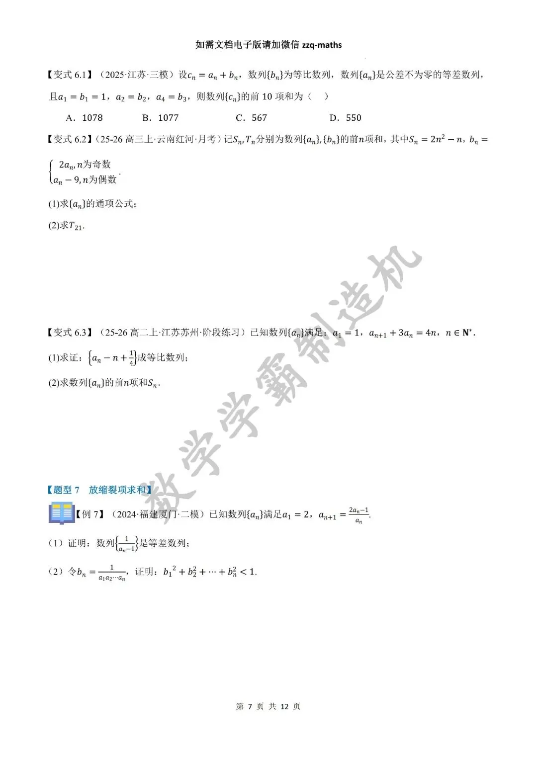 本期发布的内容是2025-2026秋季高二数学讲义【数列的求和(七大题型】,快来看看吧!该篇完整无水印原卷版和解析版可关注公众号获取, 另外整套完整无水印原卷版和解析版可考虑加入精品QQ群获取。有任何问题可以微信公众号留言,或者添加邹老师个人微信号zzq-maths。