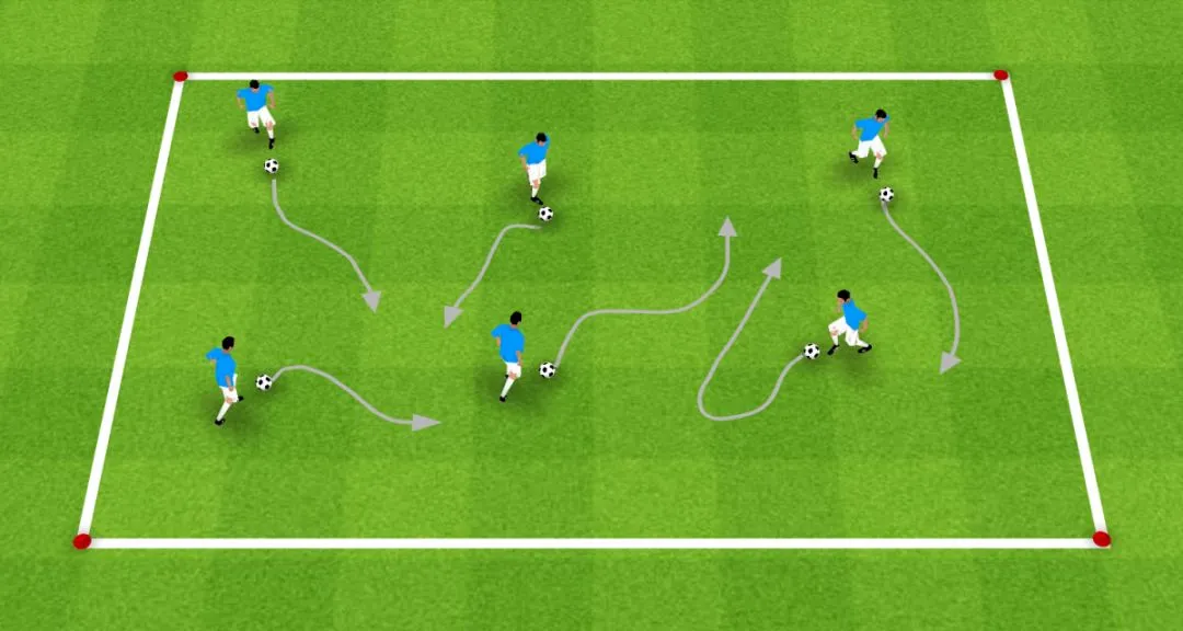1. 先让球员适应带球的节奏,之后适当提升难度,注意球员非惯用脚的训练。