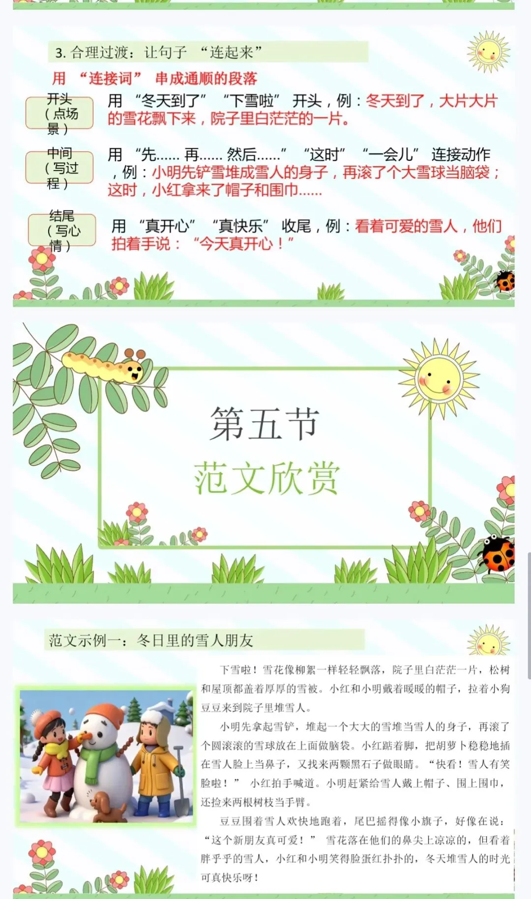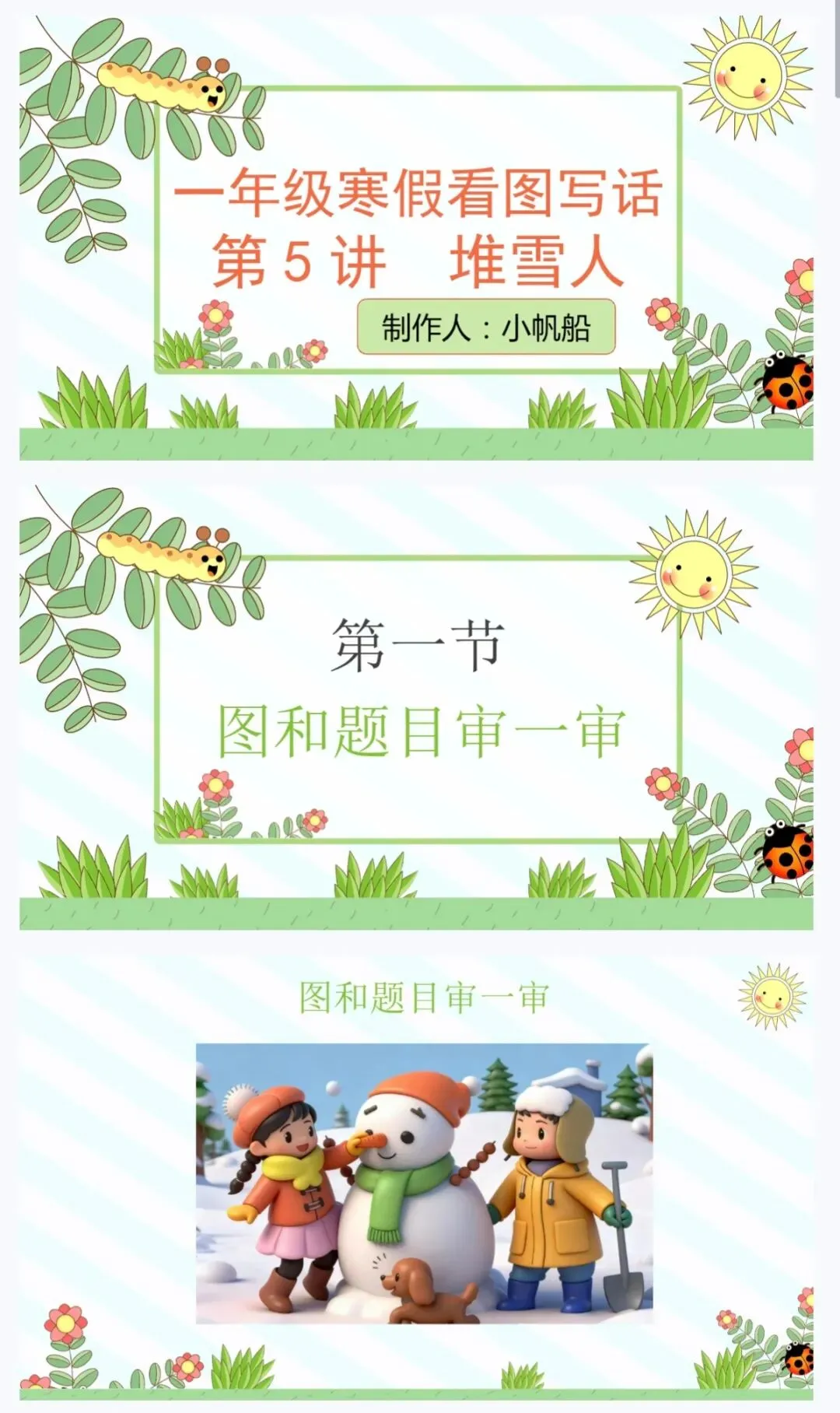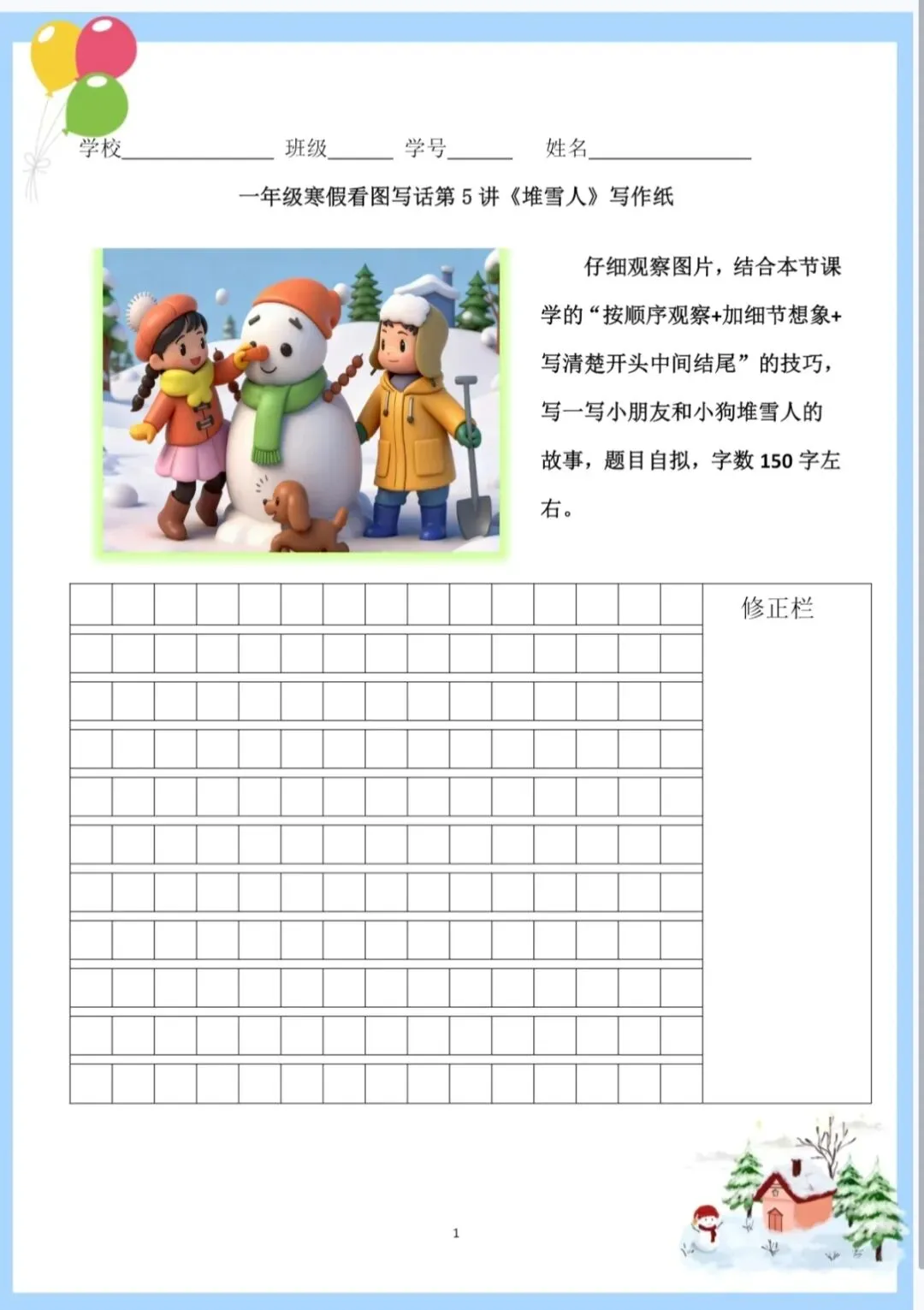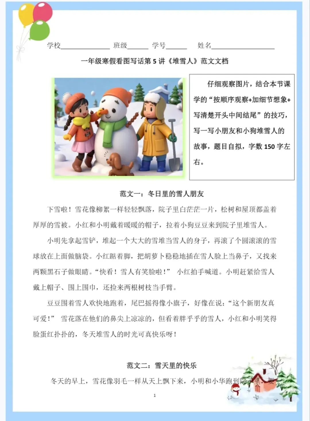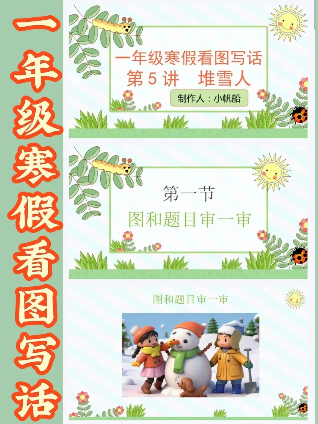 >寒假一年级看图写话|5 堆雪人|课件、教案、写作纸、范文文档