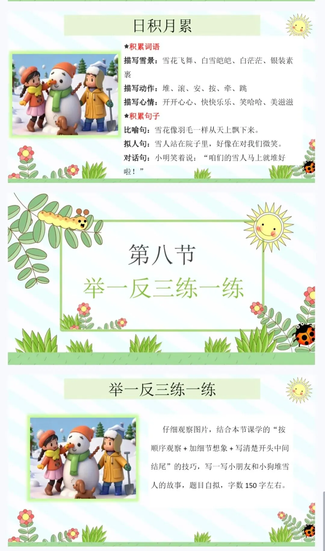 寒假一年级看图写话|5 堆雪人|课件、教案、写作纸、范文文档