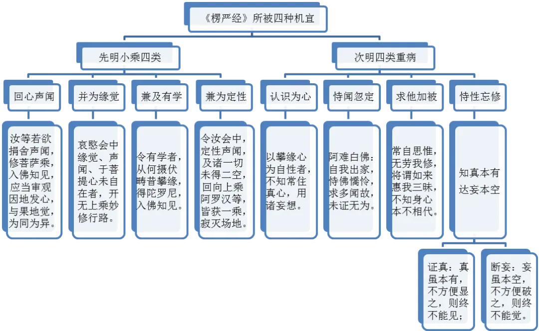 以上四类,寻常指为非机,皆拣其病而去之,今则亦拣列乎当机,其故何也?以此经乃对症之良药,正治此之四病,故以阿难发起,示居小位,示现诸病,引发如来,应机施教,故知阿难乃大权示现,既为发起众,又属当机众,正为众生作弄引耳!