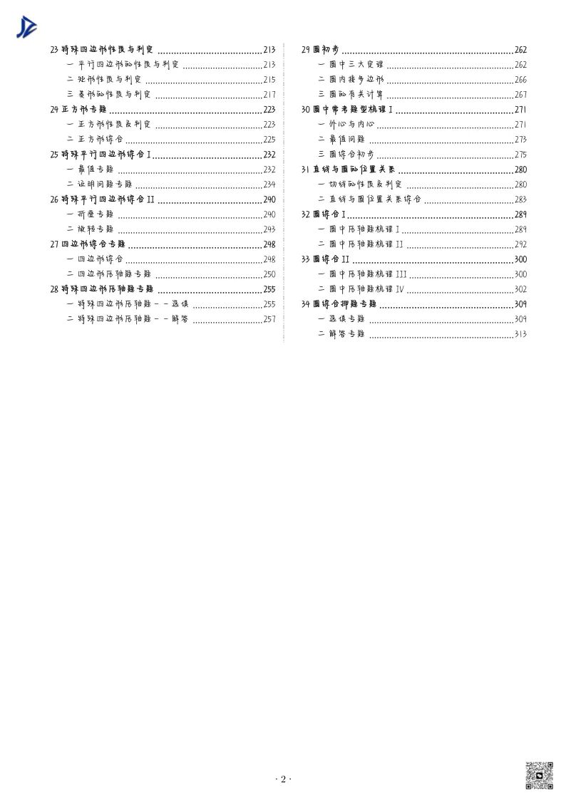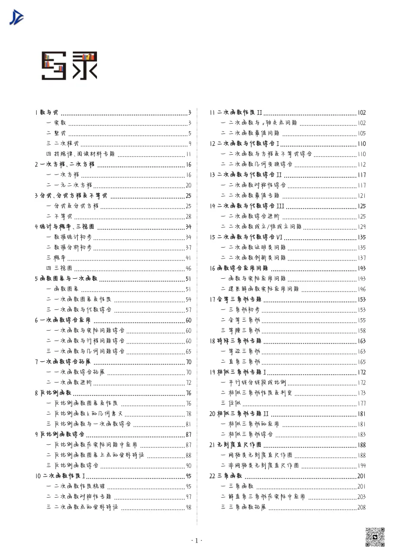 1.更聚焦,全篇聚焦函数和几何板块,并且重点关注二次函数、几何变换、圆和四边形,大篇幅概括总结这几个板块的题型及考法,更有利于中考复习的针对性,当然在后续的冲刺复习及押题板块中,对几何变换板块也会适当增加篇幅;