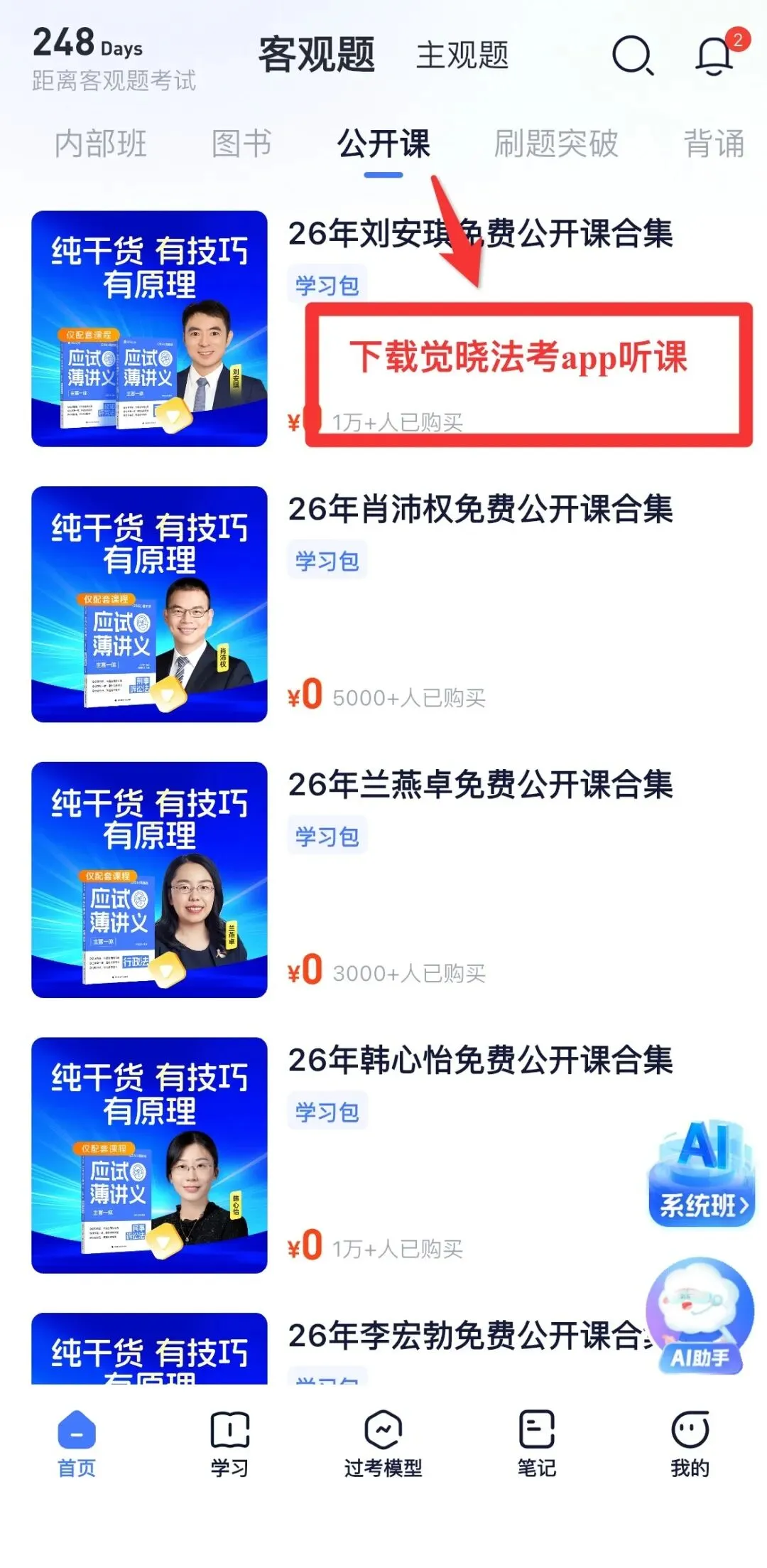 —— 以上均在在觉晓法考APP→首页→客观题→对应公开课里