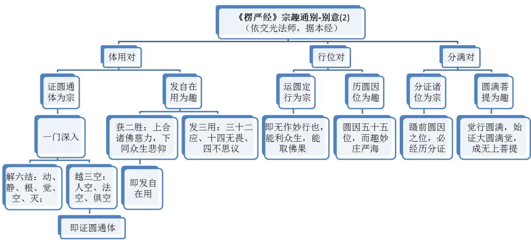 阿难所请,十方如来,得成菩提,而世尊示以一门深入,圆修之法,中中流入,结示入于如来妙庄严海;圆满菩提,归无所得,即十方佛究竟极果,讵非一经之所趣乎?