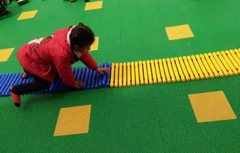2.幼儿按图把梯子平放在上。老师宣布规则:想出至少五种不同方法从梯子的这端到另一端。