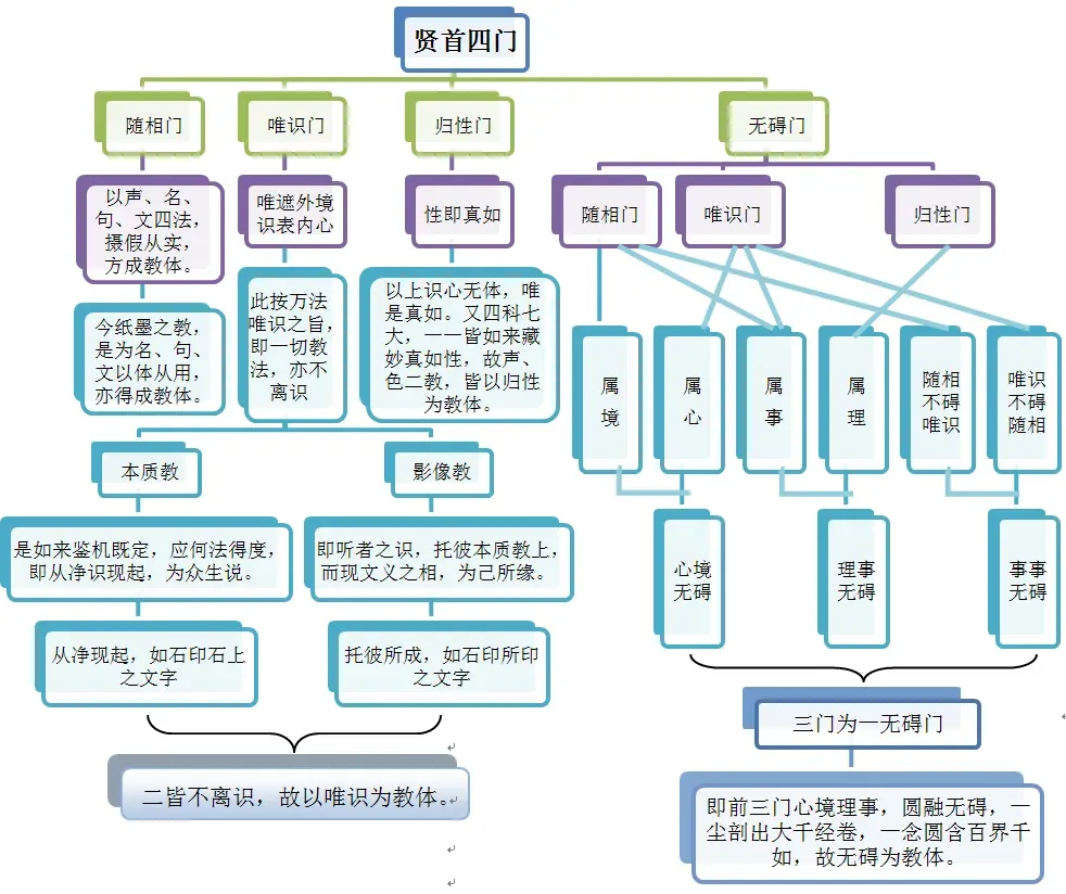 贤首谓于前三门心境理事同一缘起。混融无碍交彻相摄以为教体。以一心法有二门。皆各摄一切法故。