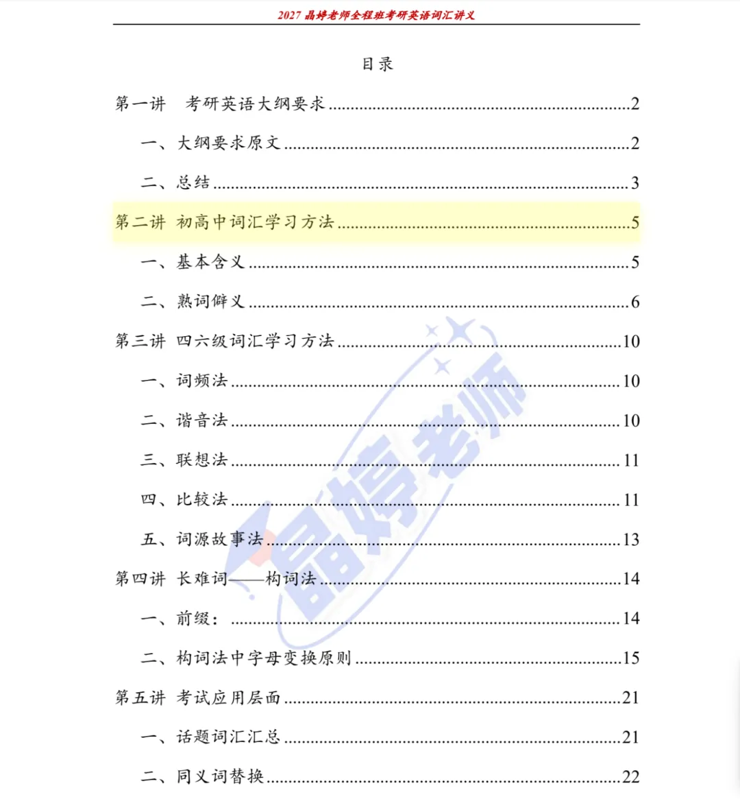 各位准研究生们大家好,今天分享:27考研王晶婷《考研英语词汇讲义》。建议将公众号星标,能够第一时间收到信息