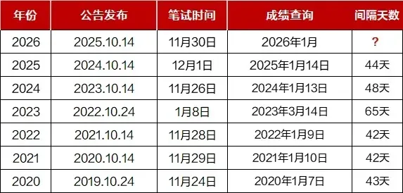 以下是往年国考成绩发布时间汇总,笔试成绩预计将于1月中上旬发布: