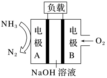 【解析】原电池中,正极电势高于负极电势,故电极B的电势高于电极A,故A错误;电子从负极流向正极,即从电极A流向电极B,故B正确;燃料电池的总反应为4NH3+3O2===2N2+6H2O,该电池工作时,每消耗标准状况下22.4 L即1 mol O2转移4 mol电子,故C正确;碱性条件下,氨气在负极失电子生成N2,其电极反应为2NH3-6e-+6OH-===N2+6H2O,故D正确。