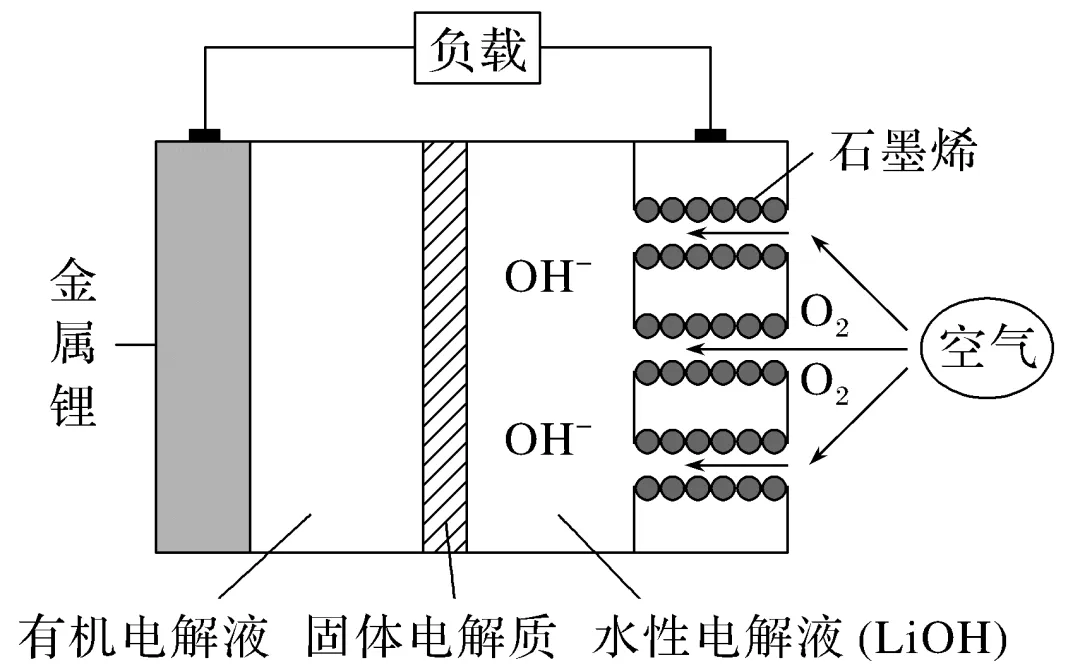 【解析】A.锂可以与水反应,故有机电解液不可以用水性电解液代替,A项错误;B.金属锂为负极,发生失电子的氧化反应,B项错误;C.当外电路转移1 mol 电子时,消耗0.25 mol的氧气,即理论上石墨烯电极消耗标准状况下5.6 L的O2,C项错误;D.该电池的负极反应为4Li-4e-===4Li+,正极反应为O2+4e-+2H2O===4OH-,将电极反应相加可得总反应的化学方程式4Li+O2+2H2O===4LiOH,D项正确。