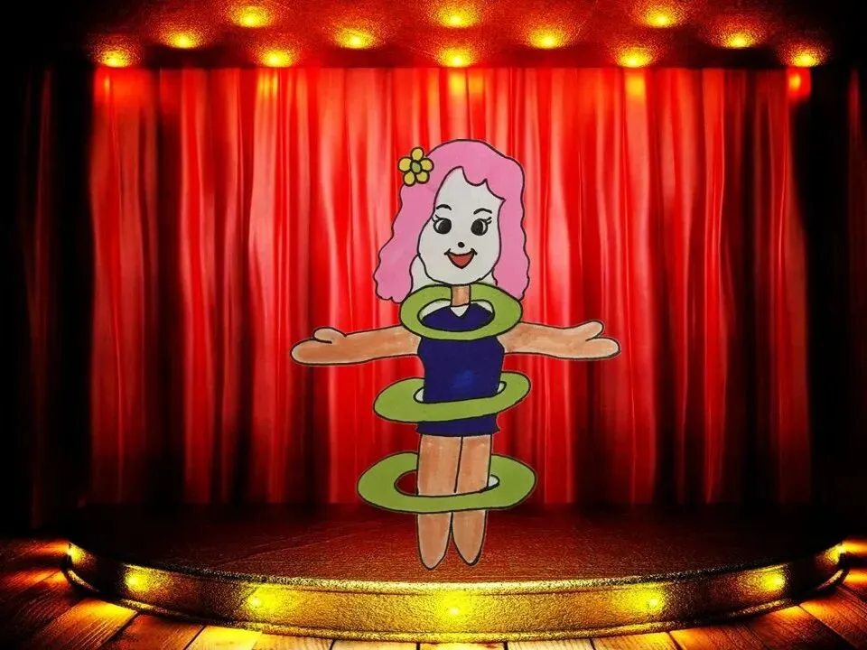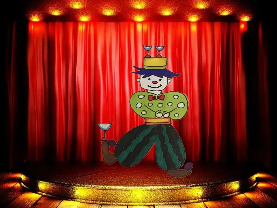 提问:杂技演员在表演什么节目?这首音乐共有几段?