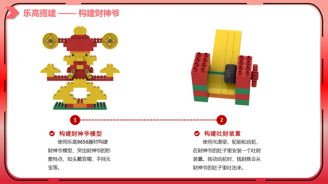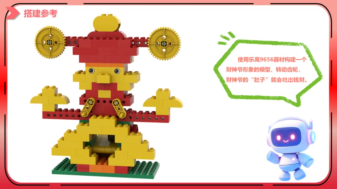 ④综合表达目标:通过搭建与讲述,完整呈现一个具有文化内涵与机械功能的财神爷作品。