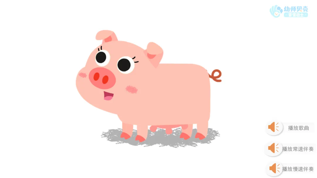 1.展示小猪的图片,播放歌曲《猪》,让幼儿学习歌词,并感受歌曲。