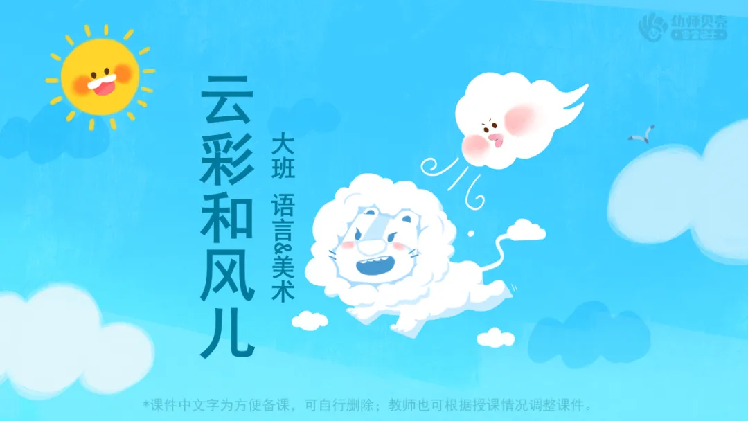 ——风儿还会把云彩变成什么呢?它可能在做什么?(小绵羊,和太阳公公捉迷藏;小白兔,在天空蹦蹦跳跳)