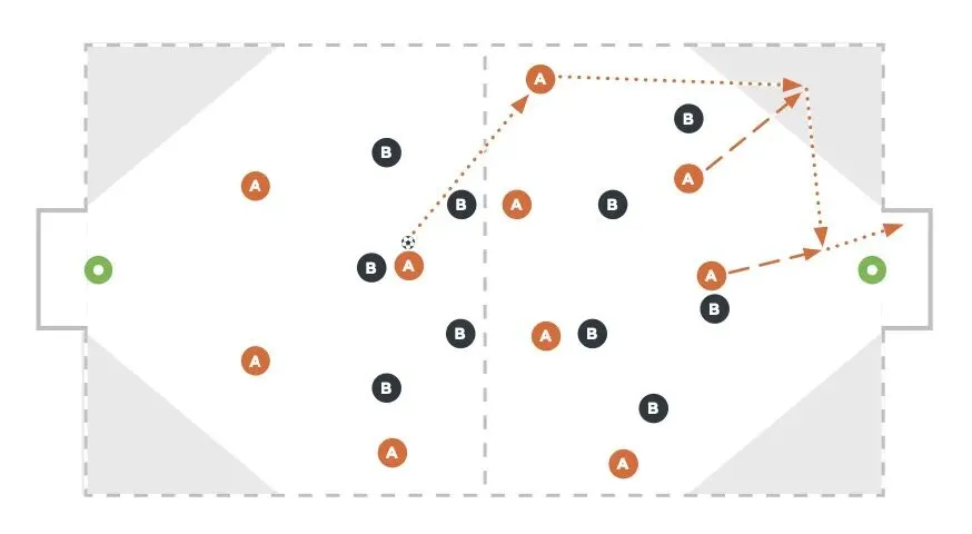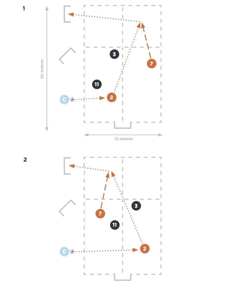 目标:在特定区域培养边后卫的跑位决策能力