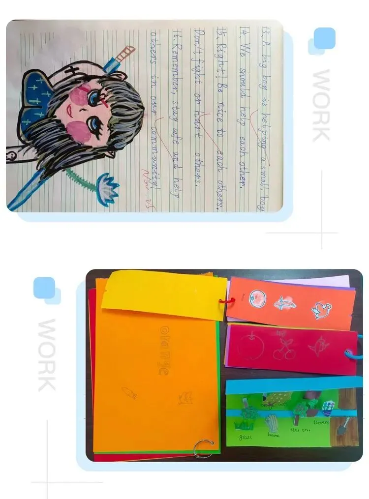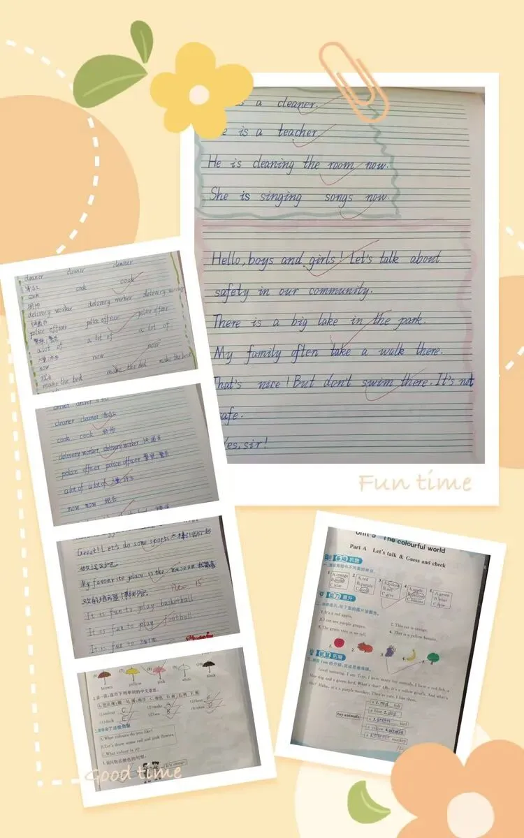 工整有加的英语作业,赏心悦目,创意十足的手抄报,色彩鲜艳、生动有趣,实在是太出色了!加上老师认真严谨的批改,这份满满的收获感,真的让人忍不住点赞!老师一笔一划细致批改的模样,更是这份学习时光里超温暖的印记!