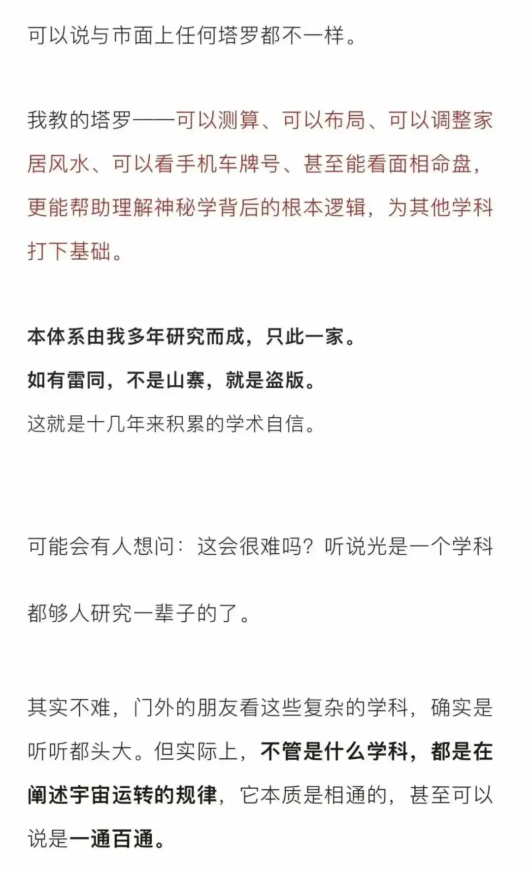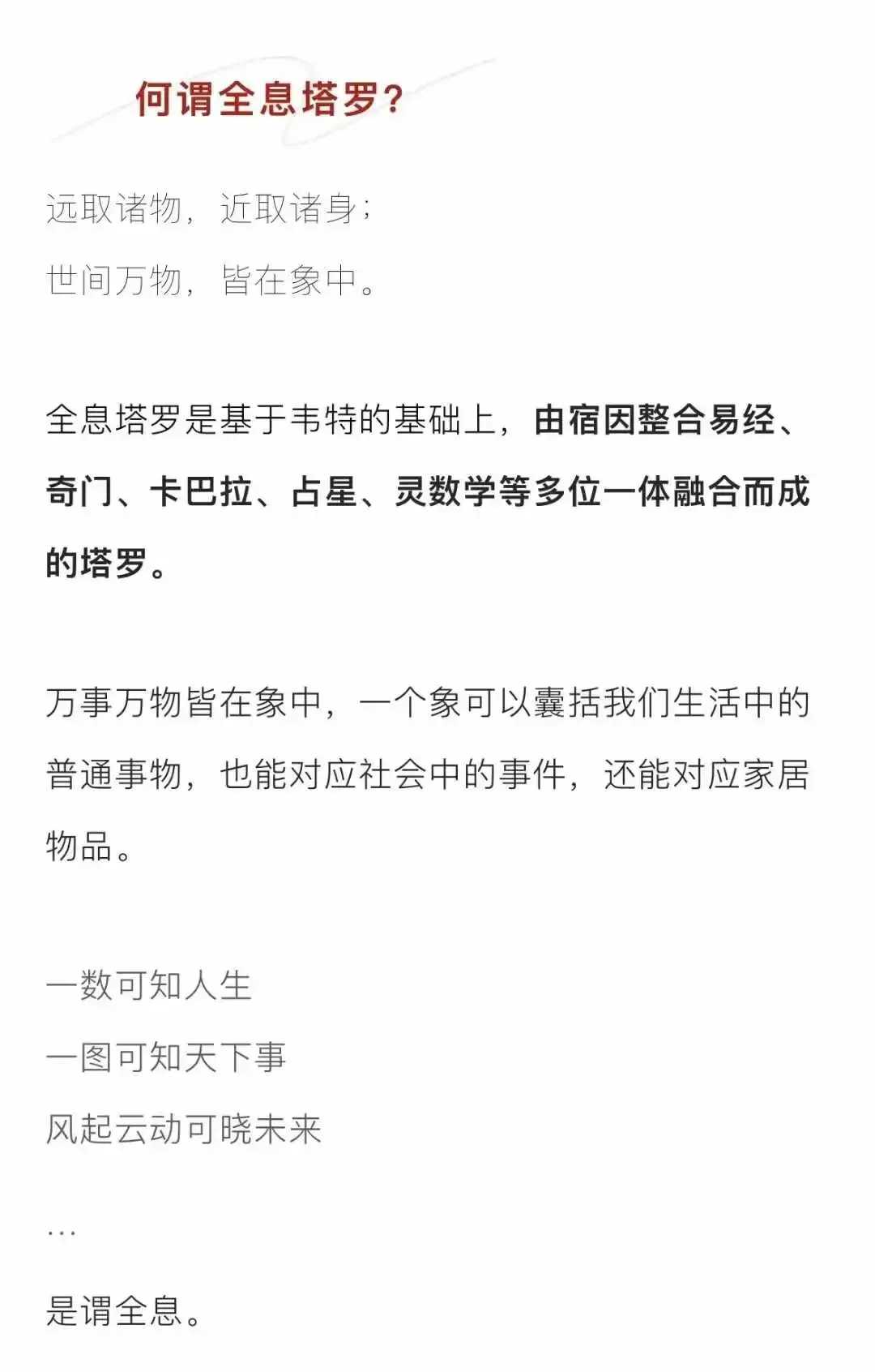 宿老师的塔罗课程好评不断,这套课程弥补了去年意犹未尽的遗憾,内容更加丰满,独家创新全息塔罗体系,在基于韦特的基础上,整合易经、奇门、卡巴拉、占星、灵数学等多位一体融合而成的多元实用派塔罗,让塔罗真正做到一数可知人生,一图可知天下事,风起云动可晓末来!