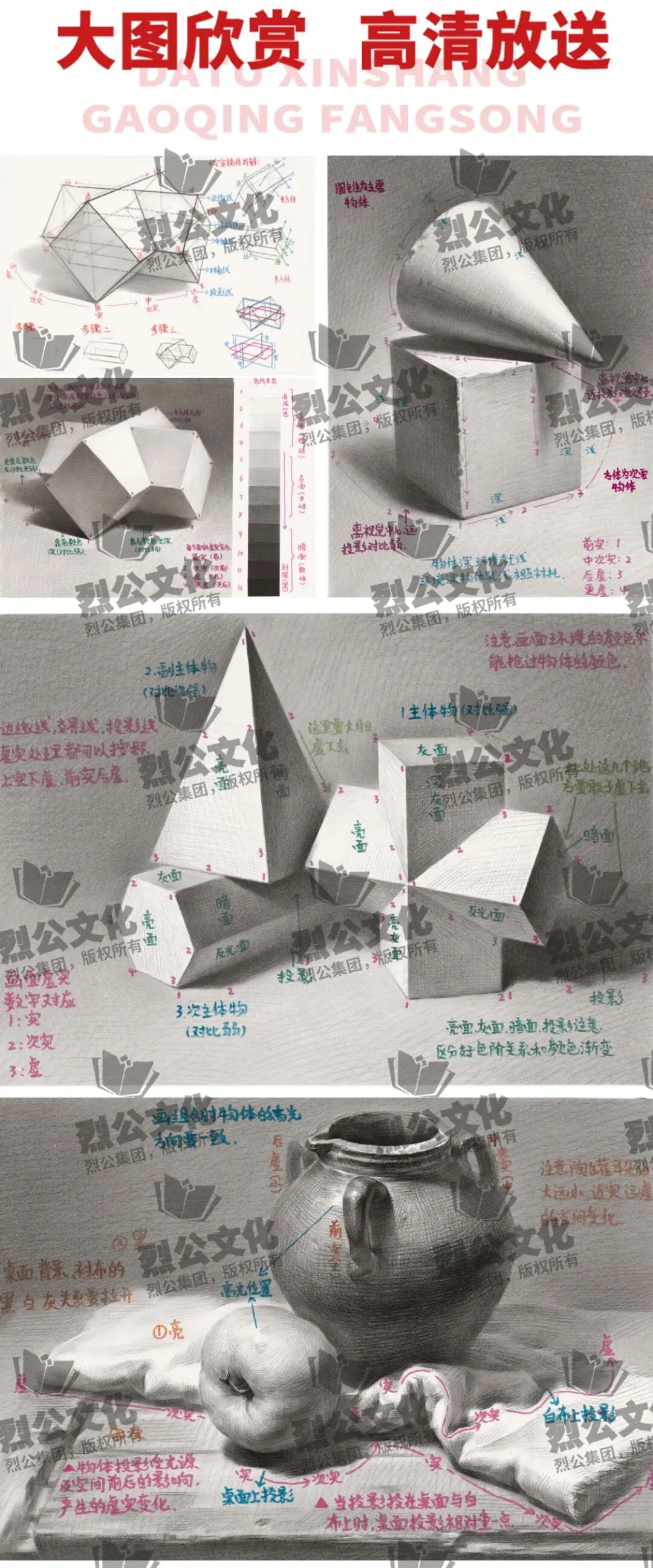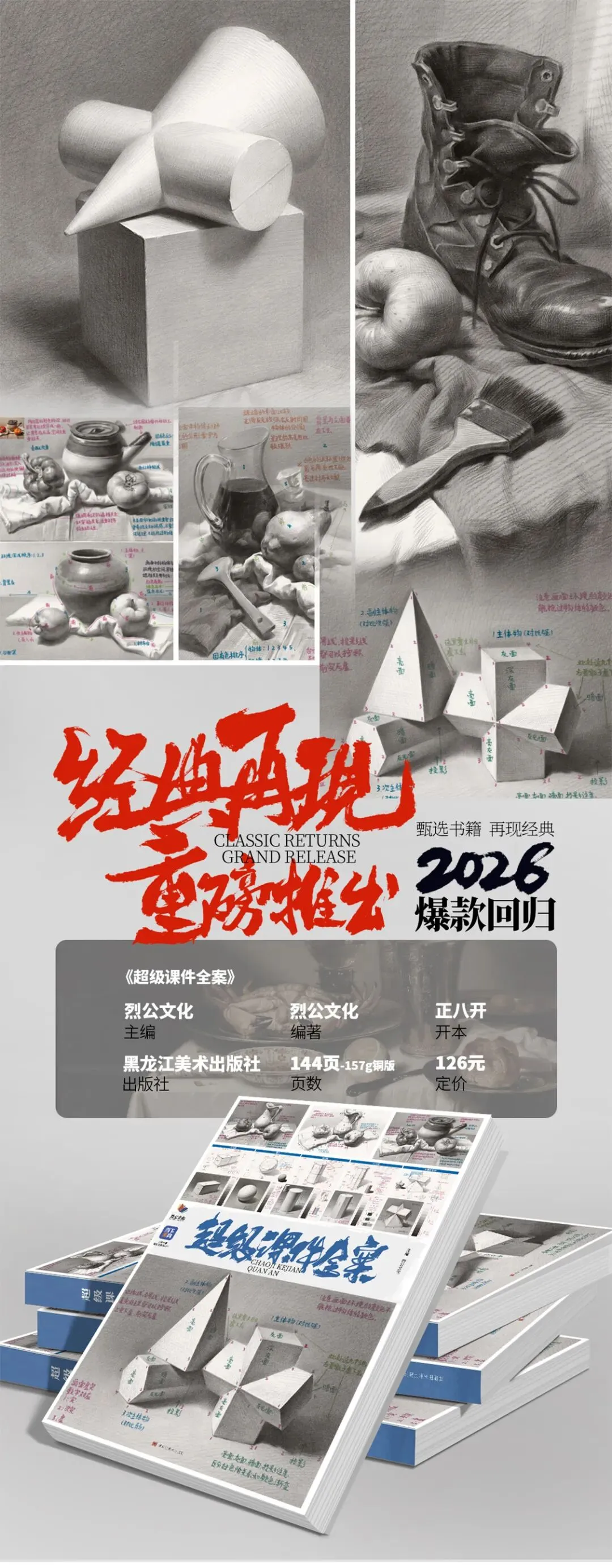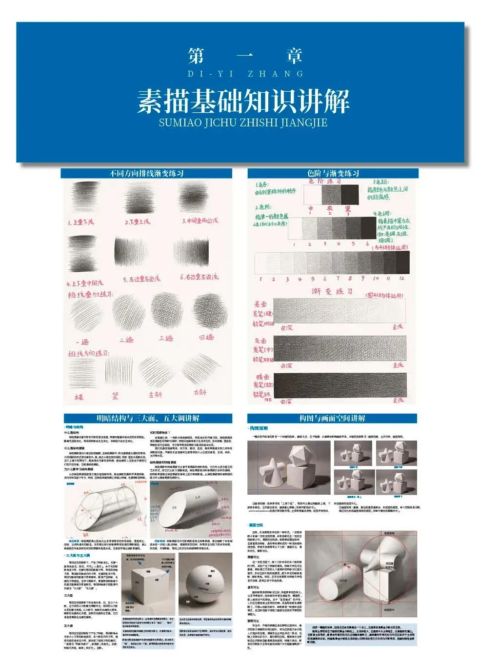 课件基础书籍,全书内容包含几何体、静物、石膏五官都有详细解析,全书内容丰富齐全适用于零基础入门教材