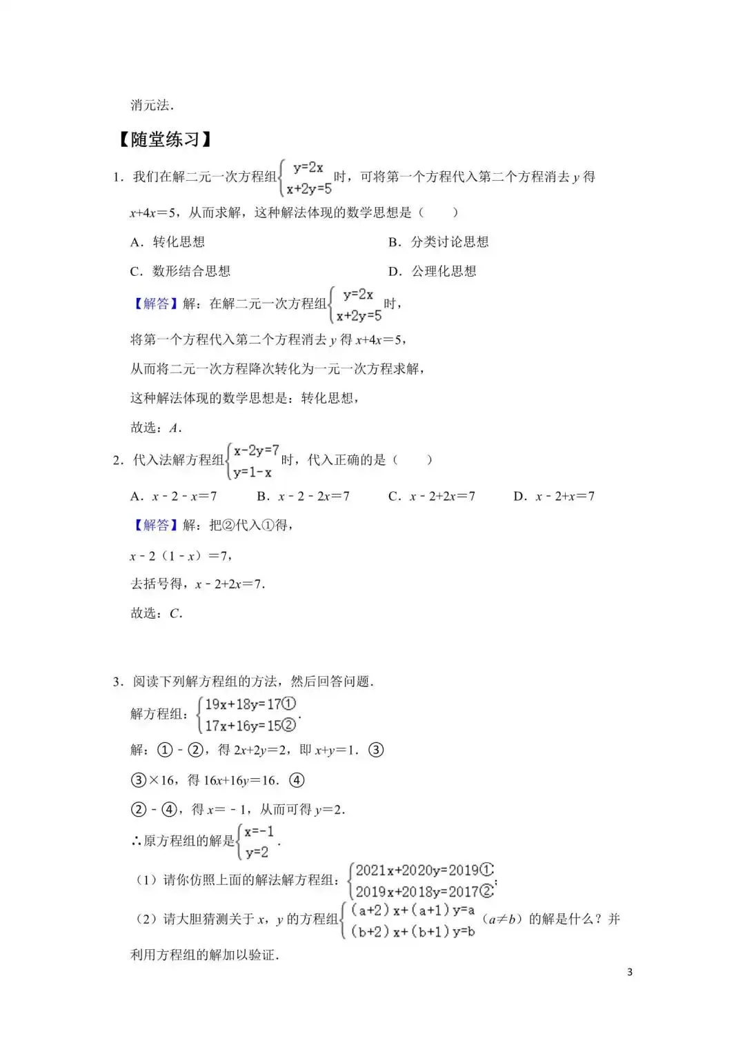 第10讲 三元一次方程组