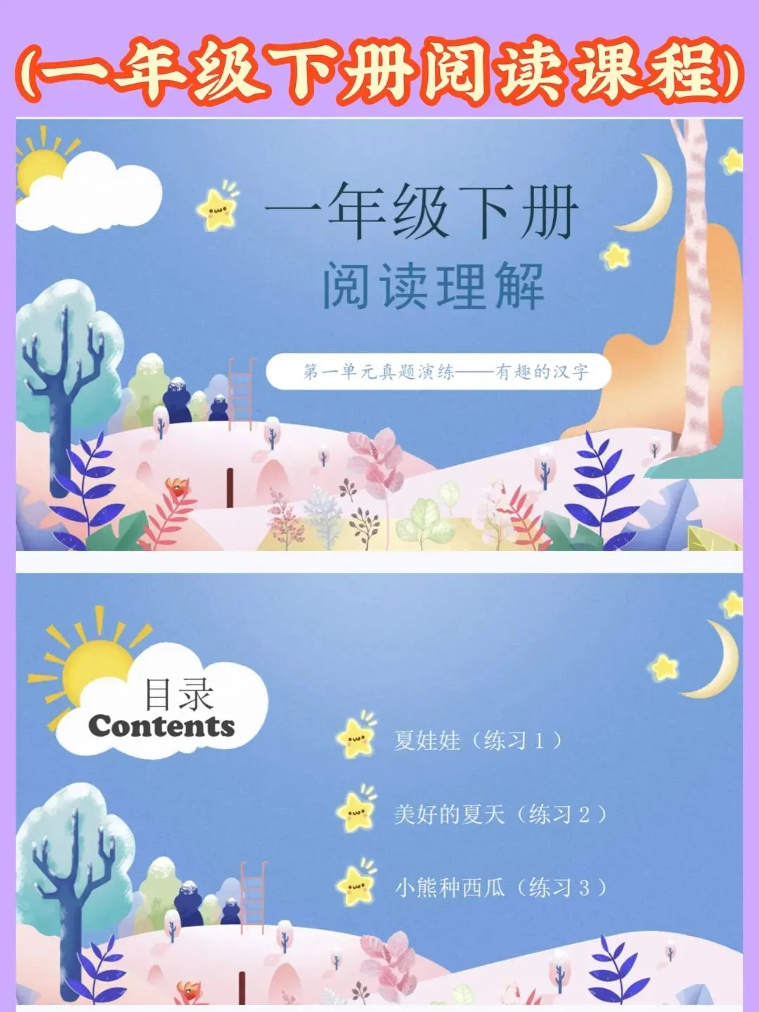 >一年级下册阅读理解|第一单元真题演练|课件、练习文档、教案