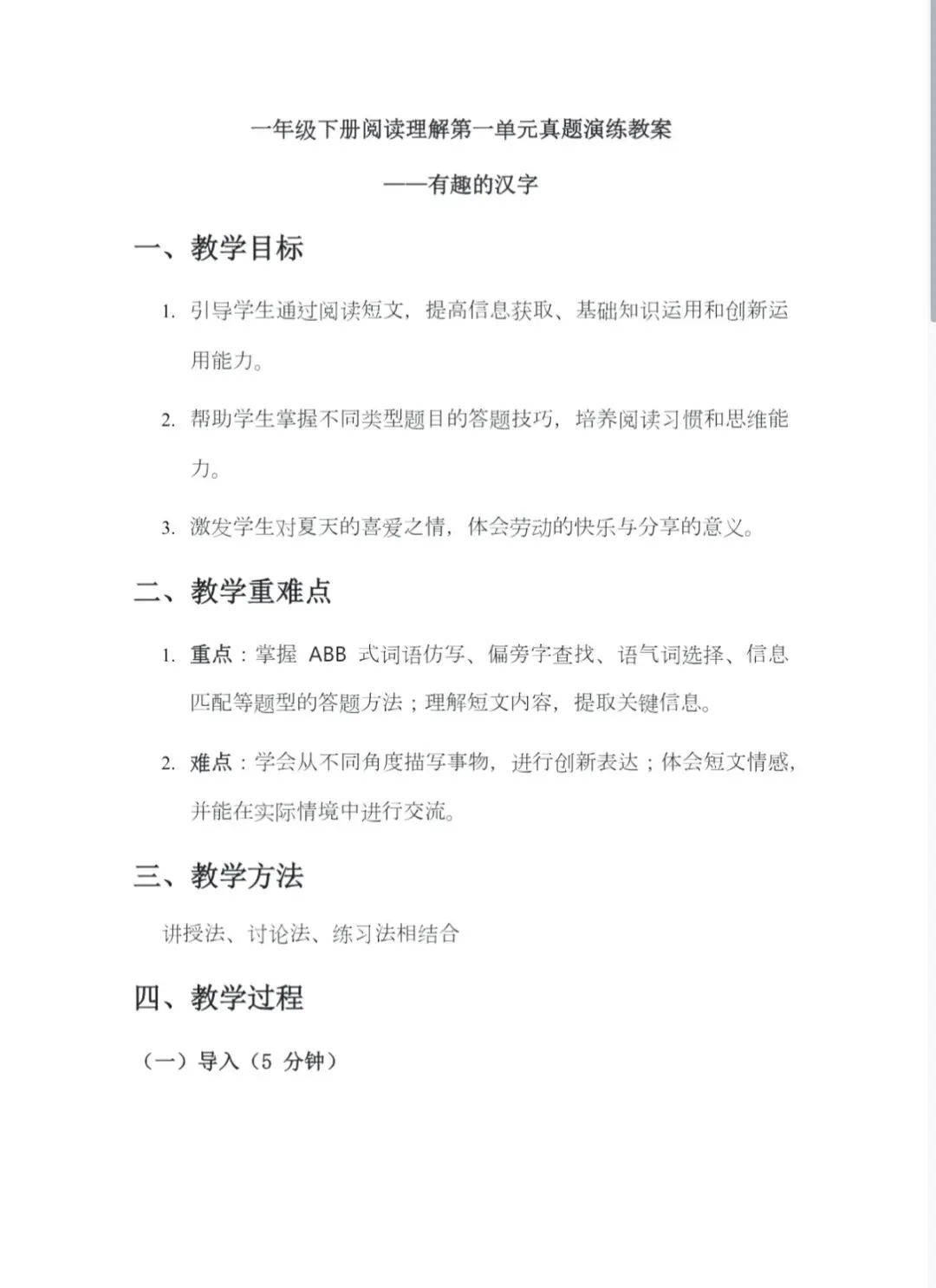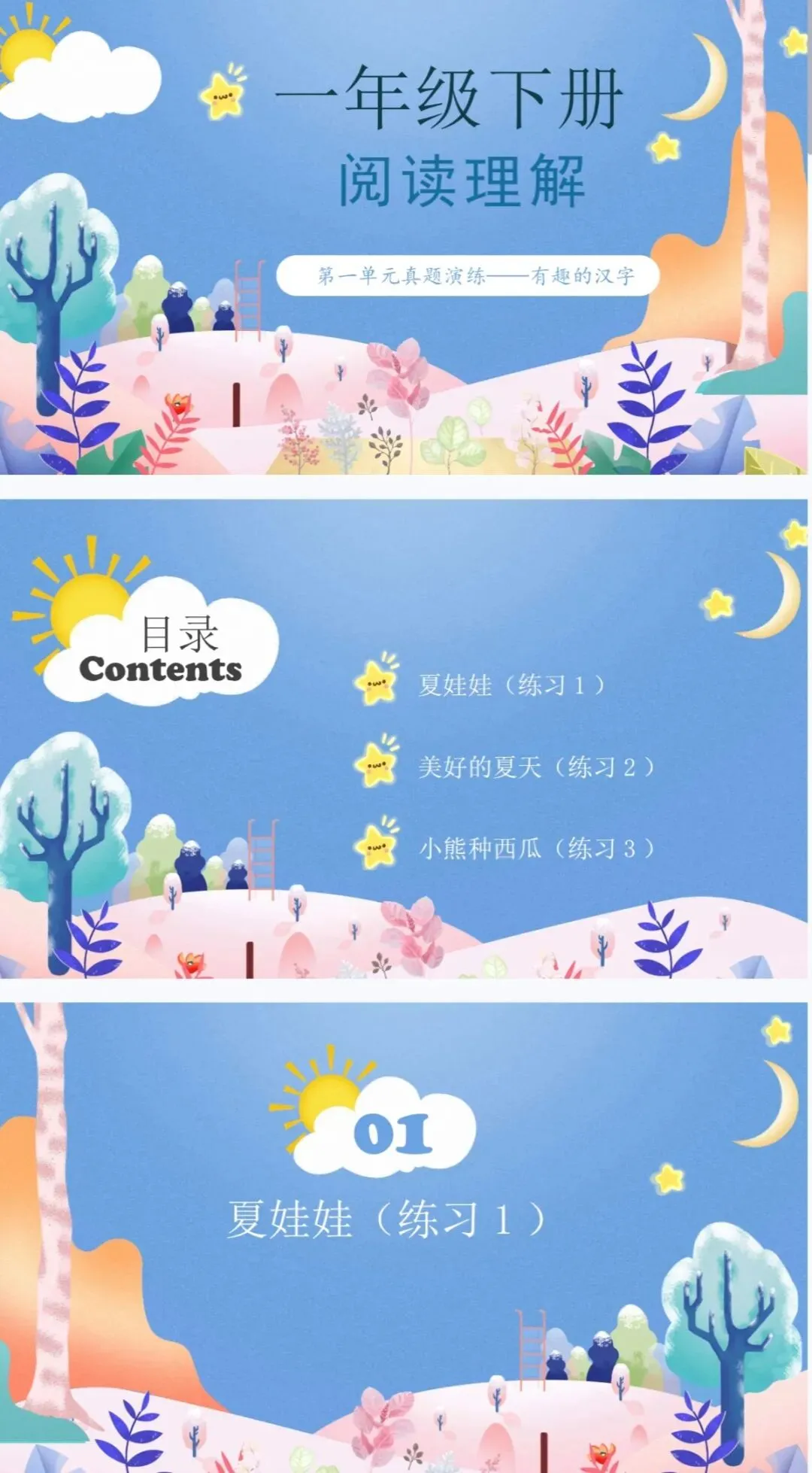 一年级下册阅读理解|第一单元真题演练|课件、练习文档、教案