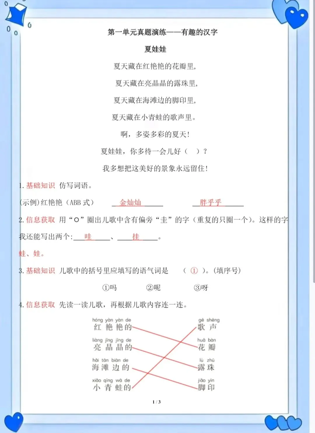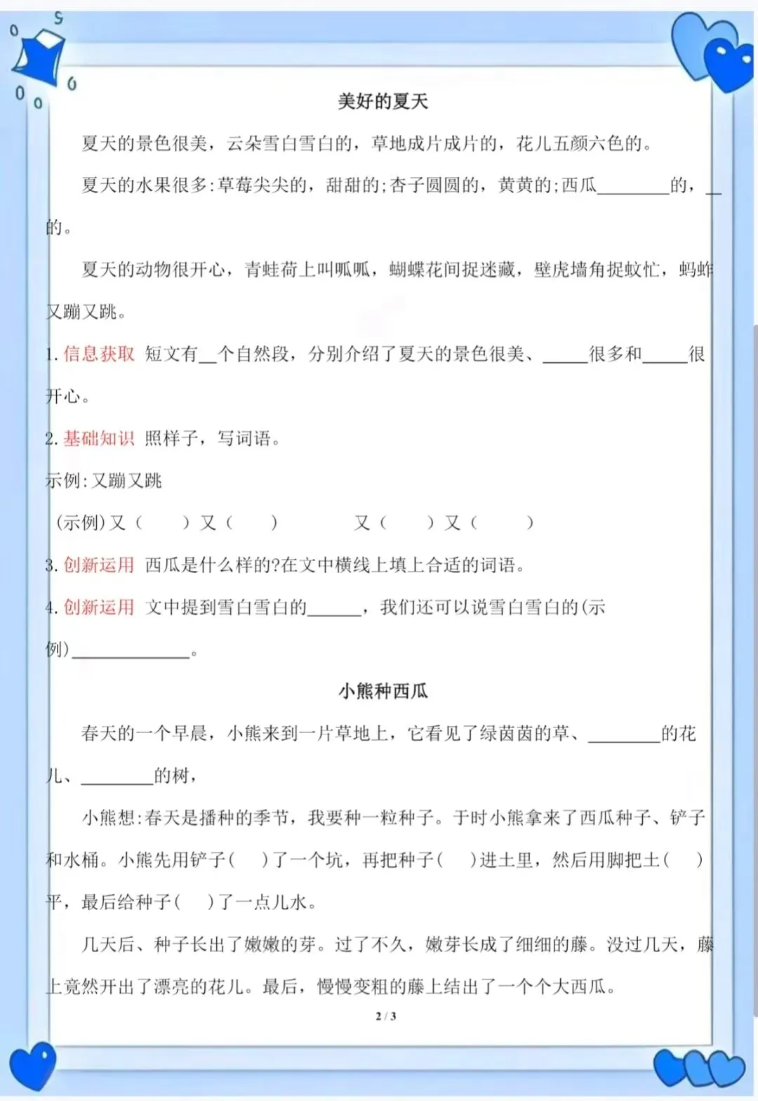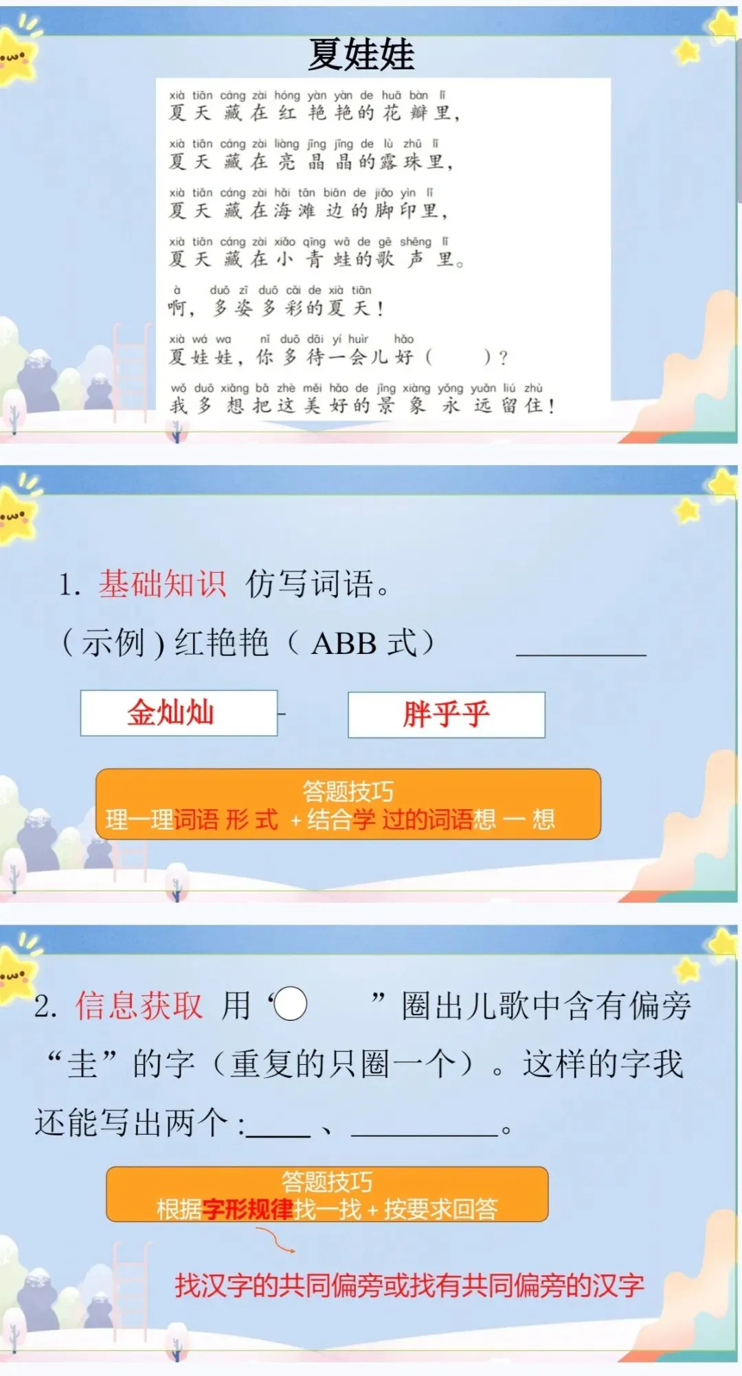 一年级下册阅读理解|第二单元阅读要素|课件、练习、教案