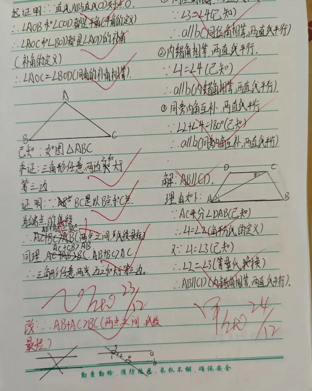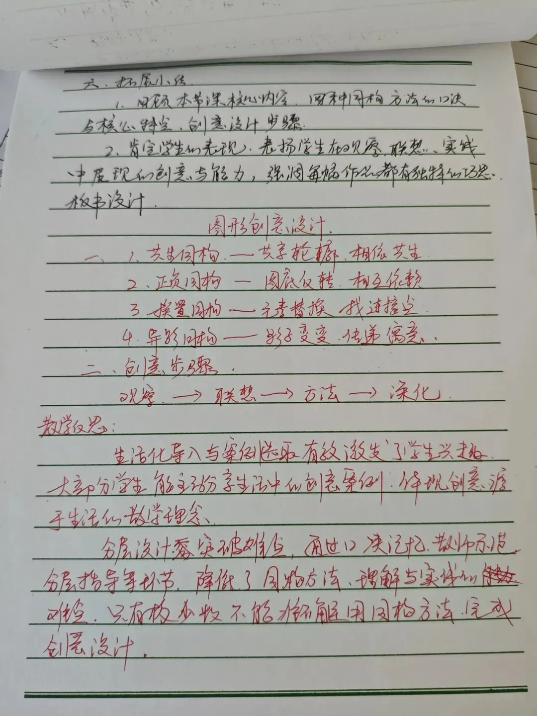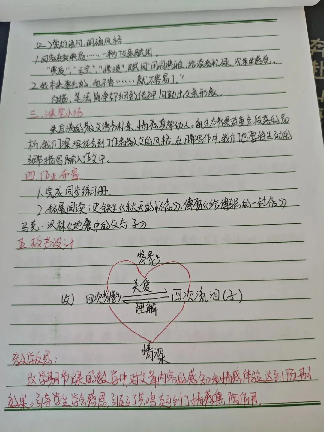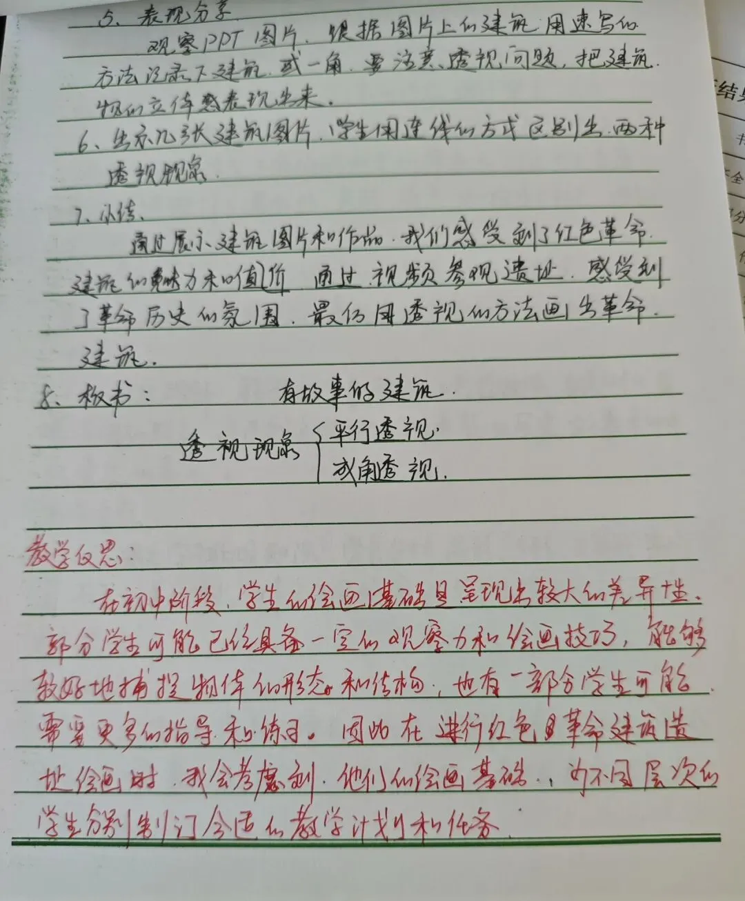 在教案检查环节,检查人员围绕核心素养目标设定、重难点把握、教学过程设计、分层策略融入、补偿性练习及教学反思撰写等多维度展开评估。从检查结果看,多数教师教案内容详实、逻辑清晰,既能精准对接新课标要求,又能结合班级学情进行二次备课调整。 作业检查聚焦“双减”政策落实,重点核查作业布置的科学性、批改的规范性与反馈的有效性。检查发现,各学科作业设计呈现多样化特色,分层落实,满足不同学生需求。既控制了作业总量,又兼顾了知识巩固与能力培养 。教师们均做到全批全改,批改符号规范统一,评语兼具激励性与指导性,不少作业还留有二次批改与订正痕迹,形成了完整的教学反馈闭环。