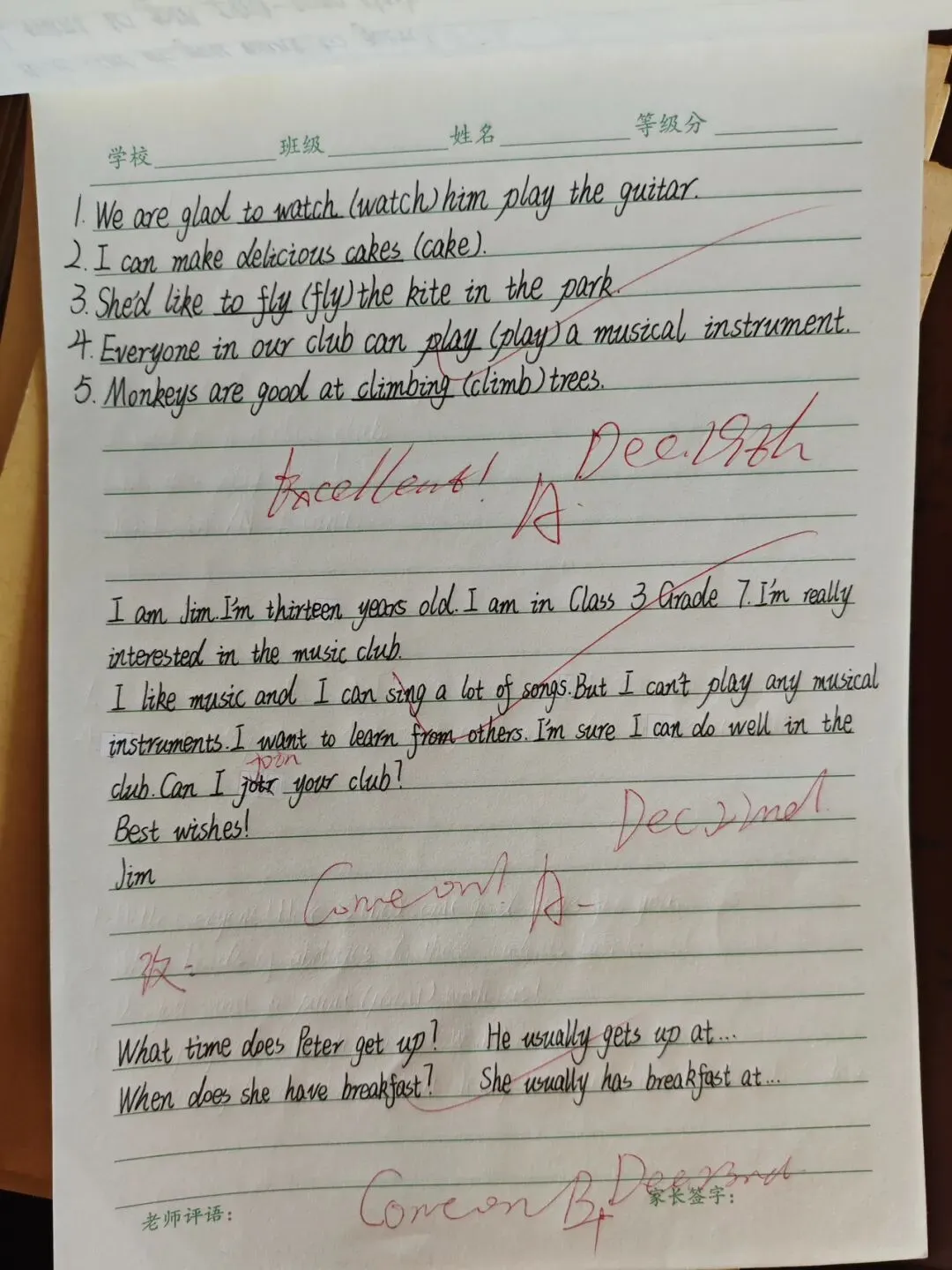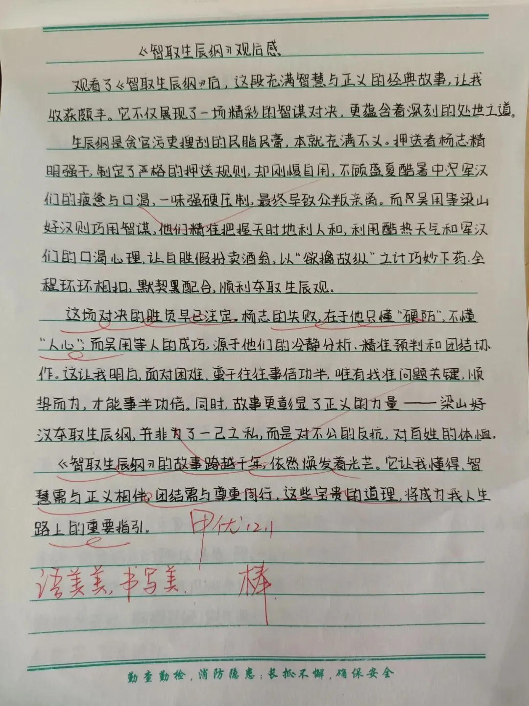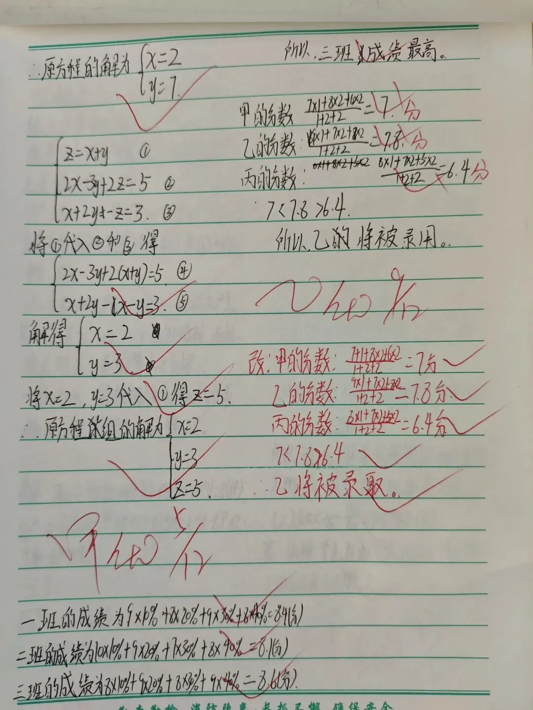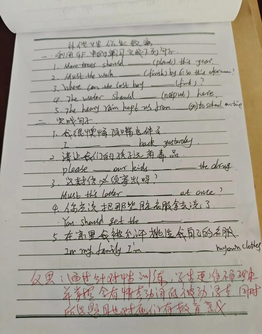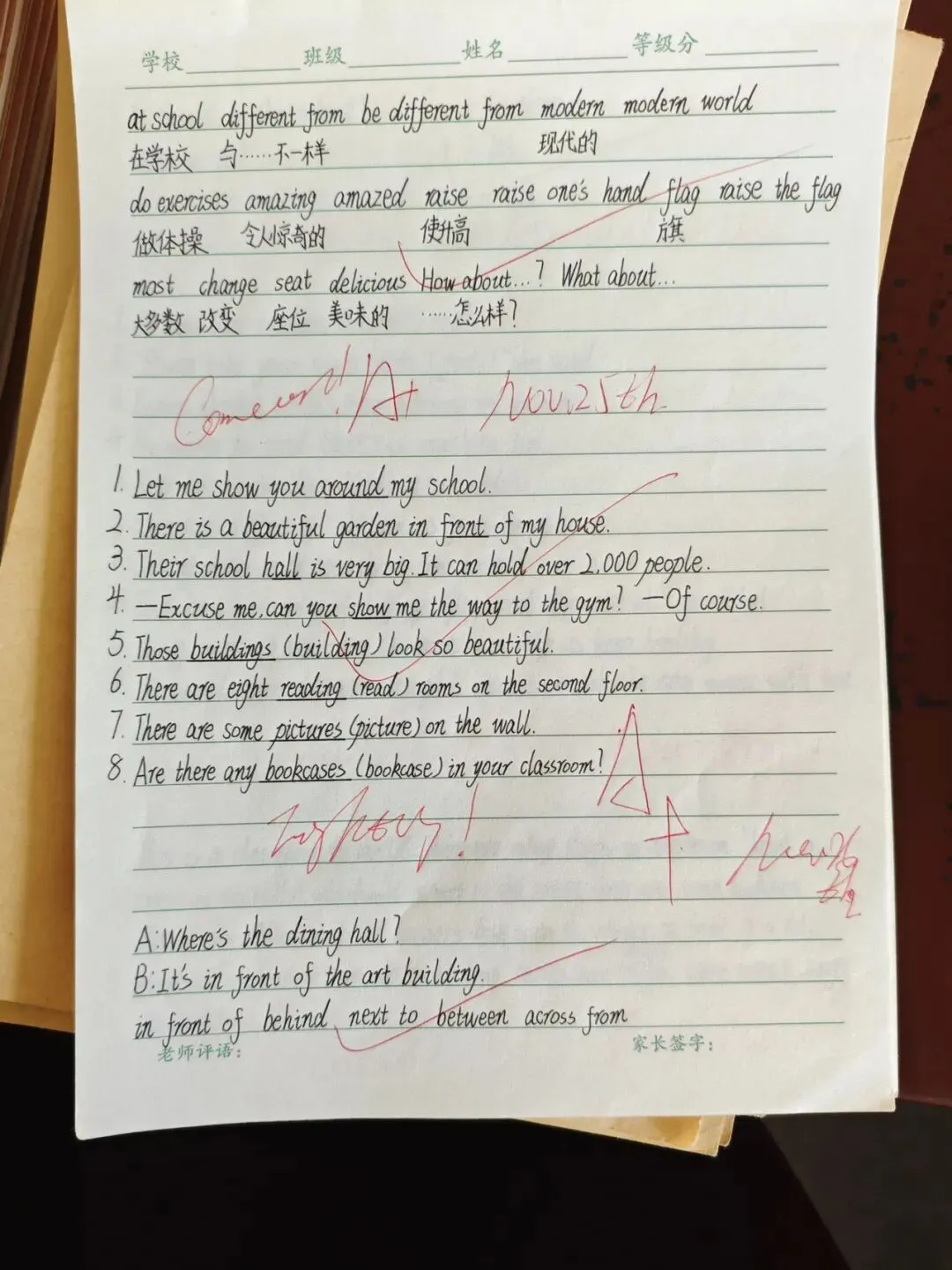 在教案检查环节,检查人员围绕核心素养目标设定、重难点把握、教学过程设计、分层策略融入、补偿性练习及教学反思撰写等多维度展开评估。从检查结果看,多数教师教案内容详实、逻辑清晰,既能精准对接新课标要求,又能结合班级学情进行二次备课调整。 作业检查聚焦“双减”政策落实,重点核查作业布置的科学性、批改的规范性与反馈的有效性。检查发现,各学科作业设计呈现多样化特色,分层落实,满足不同学生需求。既控制了作业总量,又兼顾了知识巩固与能力培养 。教师们均做到全批全改,批改符号规范统一,评语兼具激励性与指导性,不少作业还留有二次批改与订正痕迹,形成了完整的教学反馈闭环。