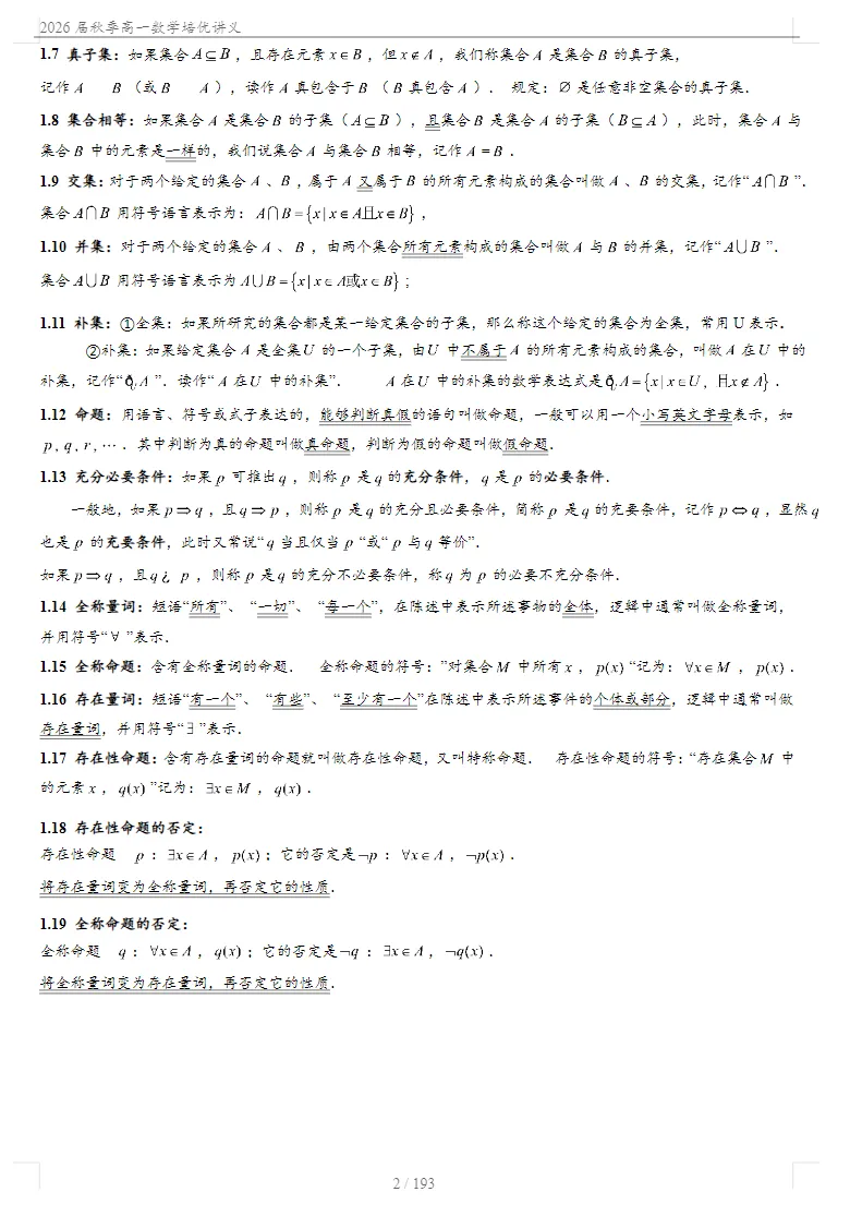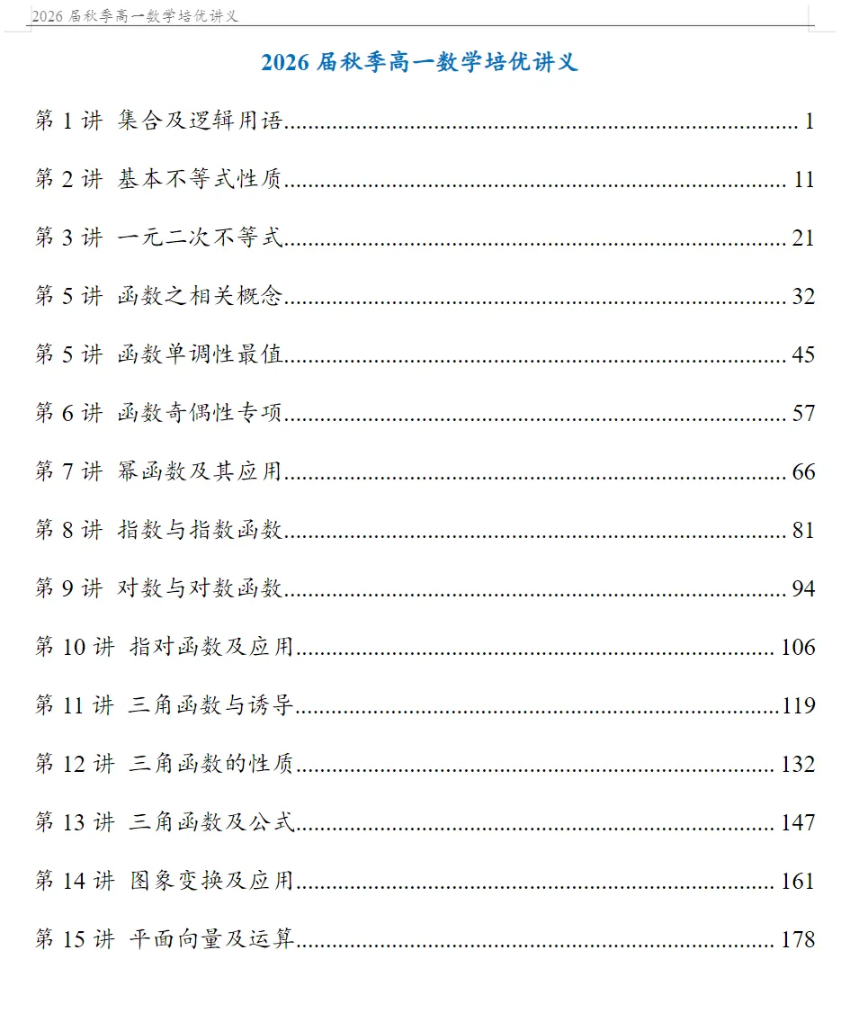 「2026《高一数学培优讲义》」