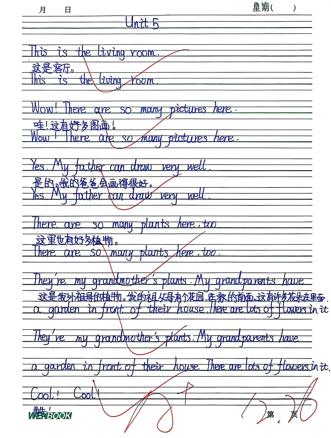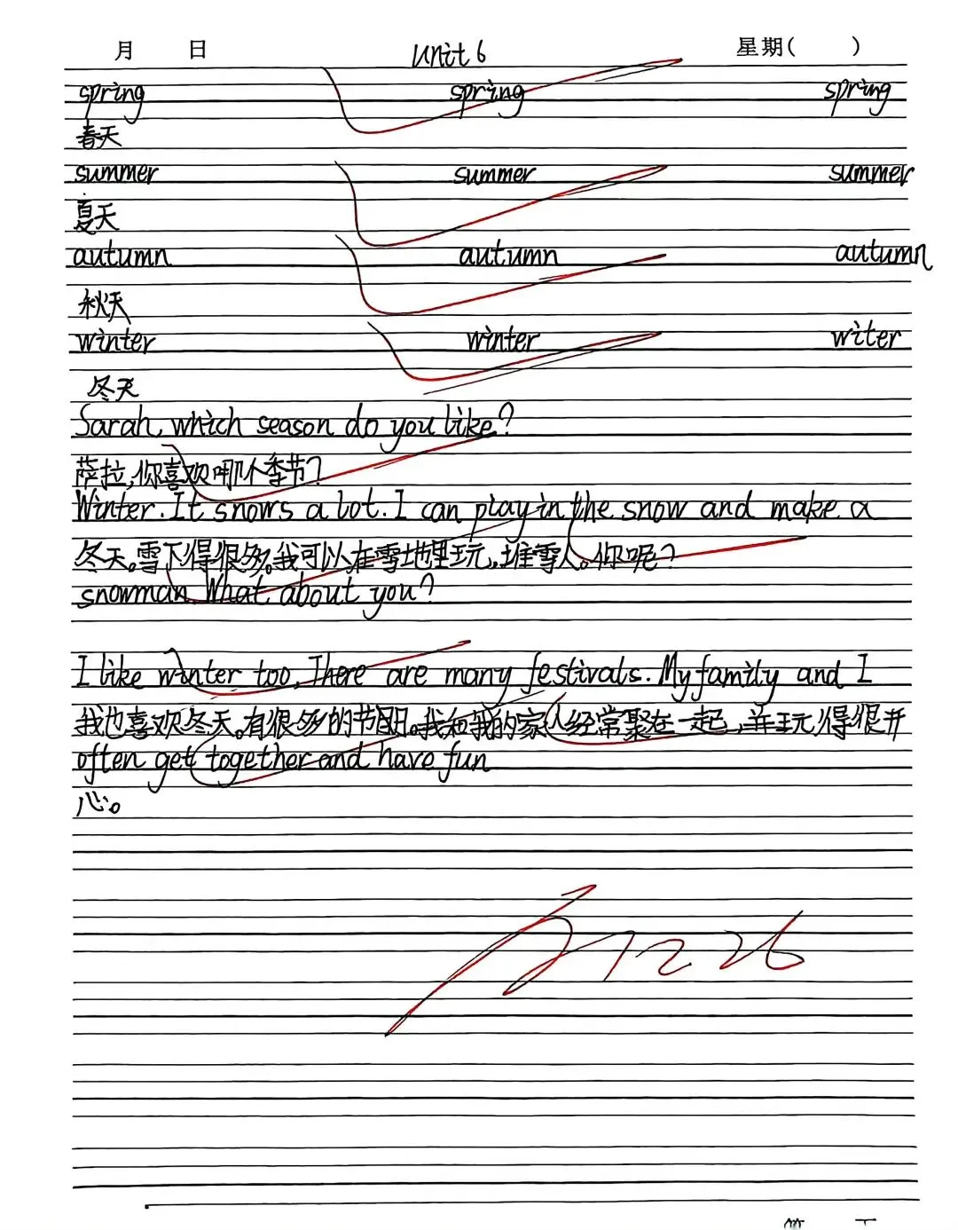 从作业检查情况来看,学校教师能立足学生学习活动的整体,从学生实际出发,科学、合理、有针对性地分层布置作业,作业做到分层设计,内容适量,学科特点鲜明,形式多样。学生能做到页面整洁、书写规范,保质保量地完成作业,教师能及时批改,用激励性的评语调动学生的积极性,注重学生习惯培养,激发了学生学习的积极性、自觉性和主动性。