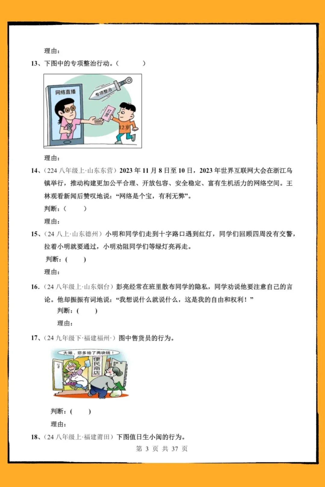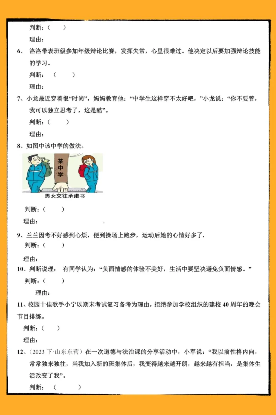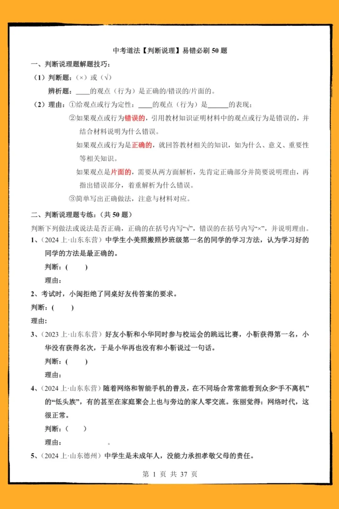 2026中考道法地毯式复习讲义-中考道法【判断说理】易错必刷50题